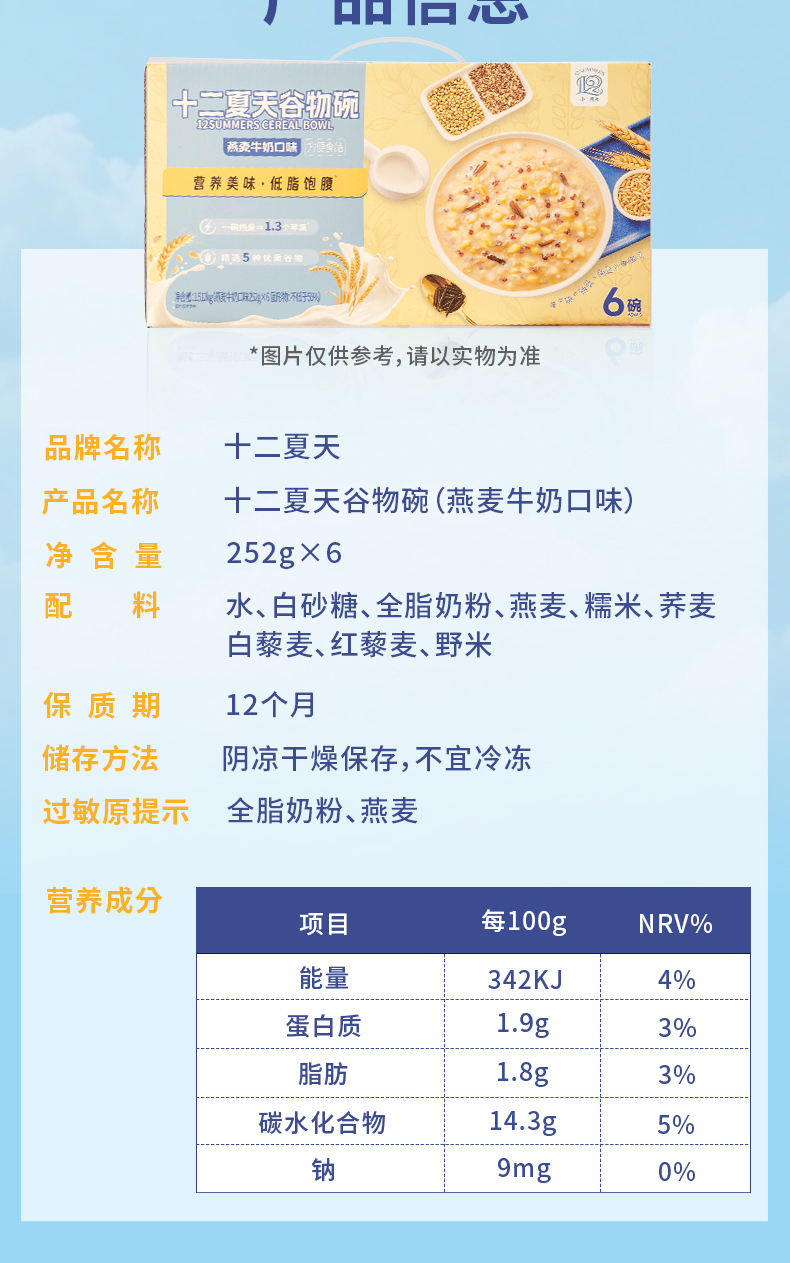 十二夏天谷物碗燕麦牛奶口味1512g