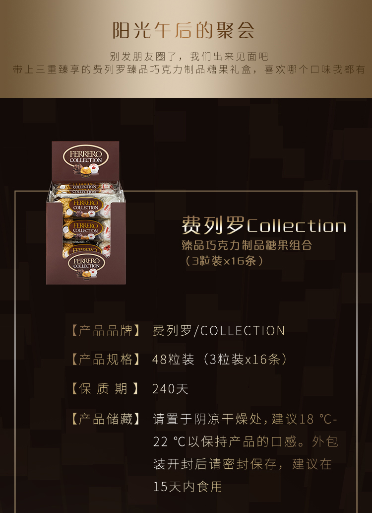 【费列罗】 臻品巧克力糖果518.4g (3粒装*16条)