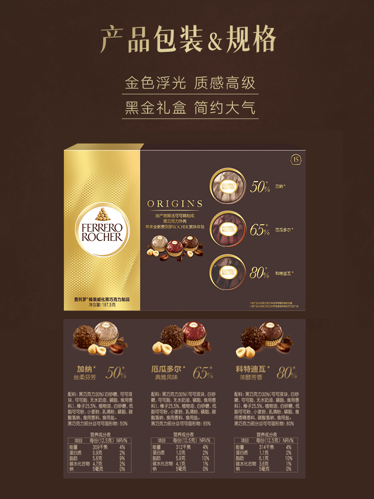 【费列罗】 榛果威化黑巧克力187.5 (15粒装)