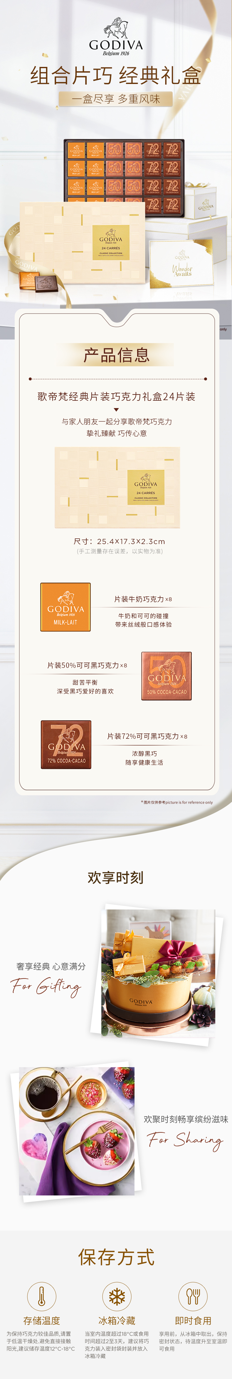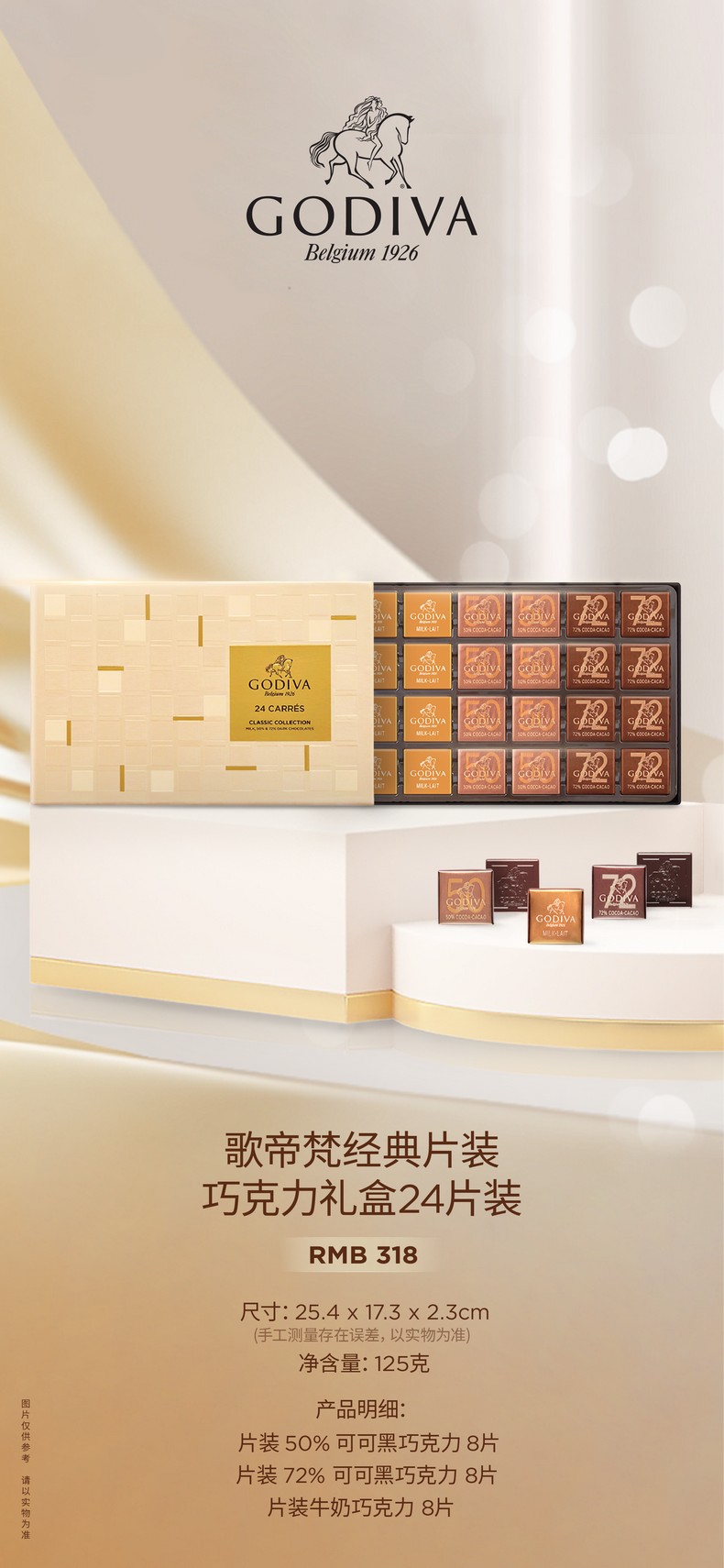 【歌帝梵】 经典片装巧克力 礼盒24片装125g