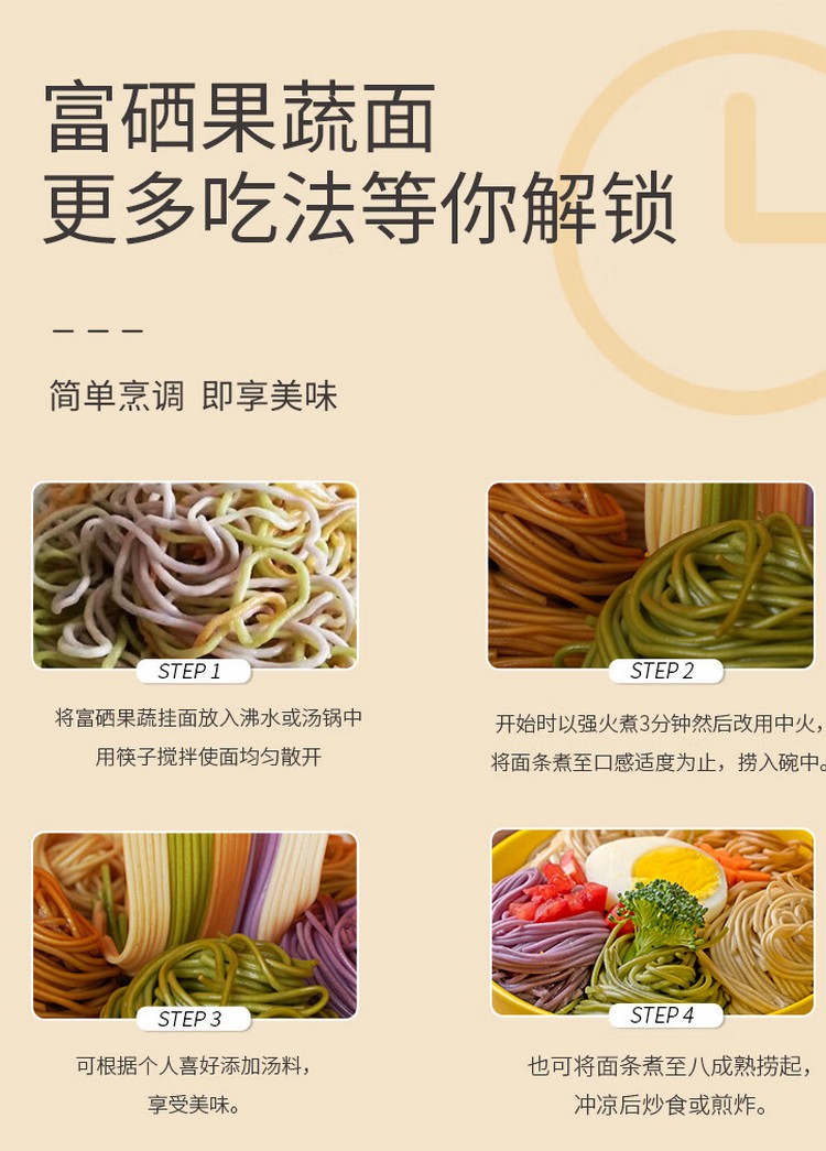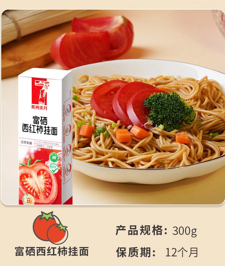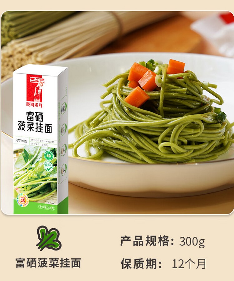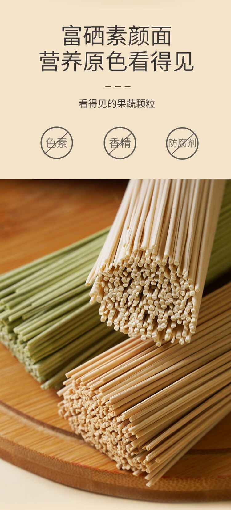 富硒胡萝卜挂面300g、富硒西红柿挂面300g、富硒菠菜挂面300g、富硒荞麦挂面300g、鸡翅木筷1双