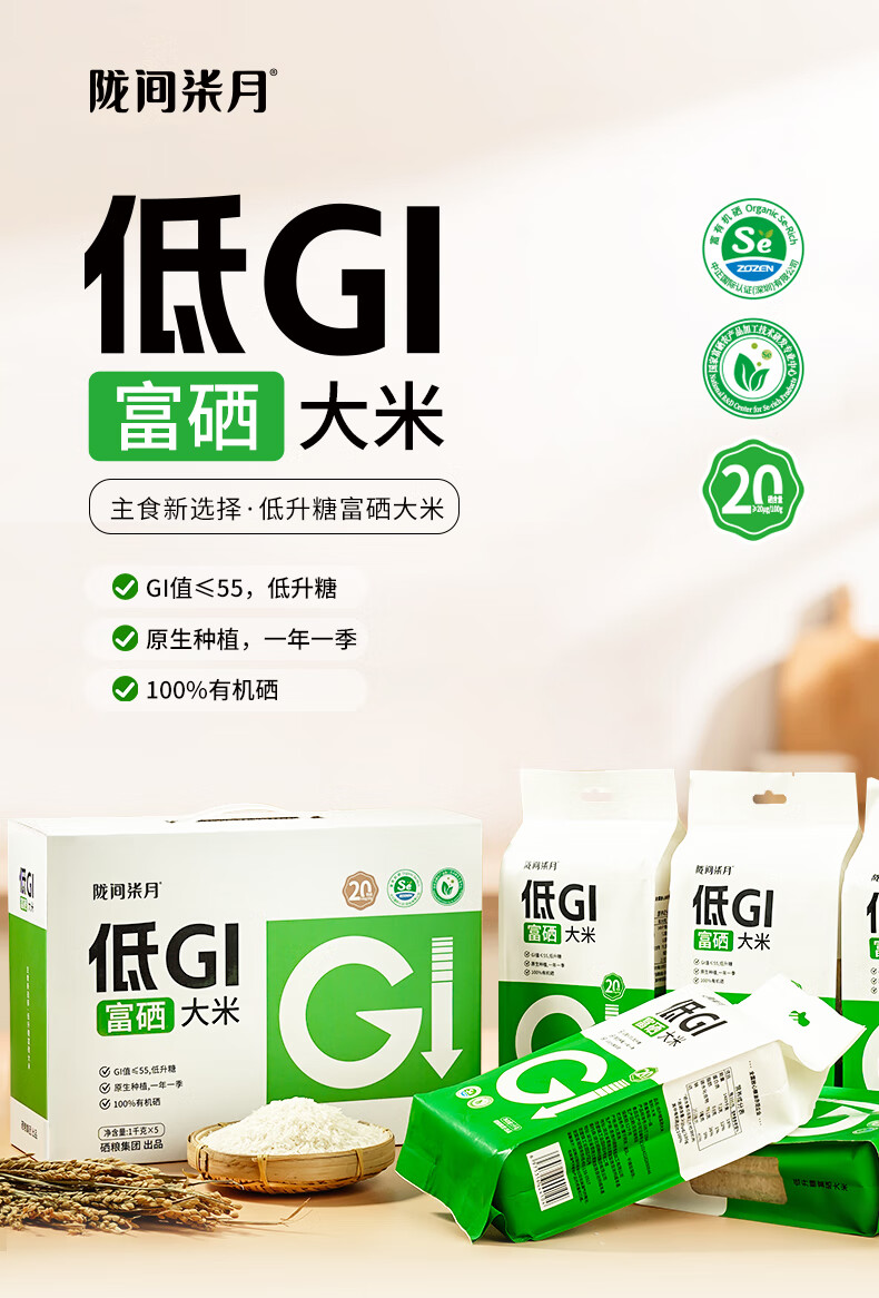 【陇间柒月】低GI低升糖富硒大米1kg*5