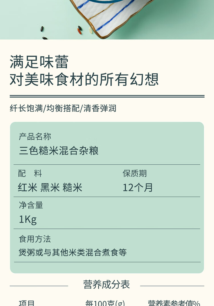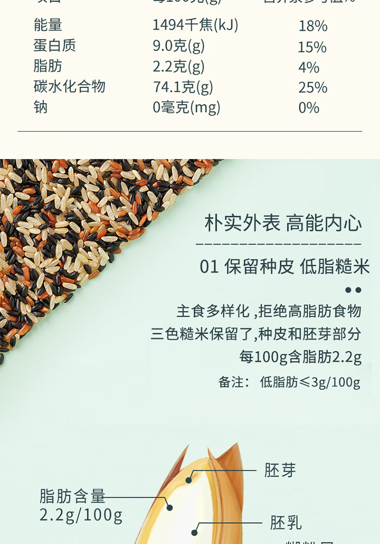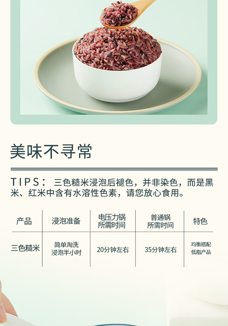保留种皮,低脂杂粮,均衡配比,口感互补,软糯清香略带嚼劲