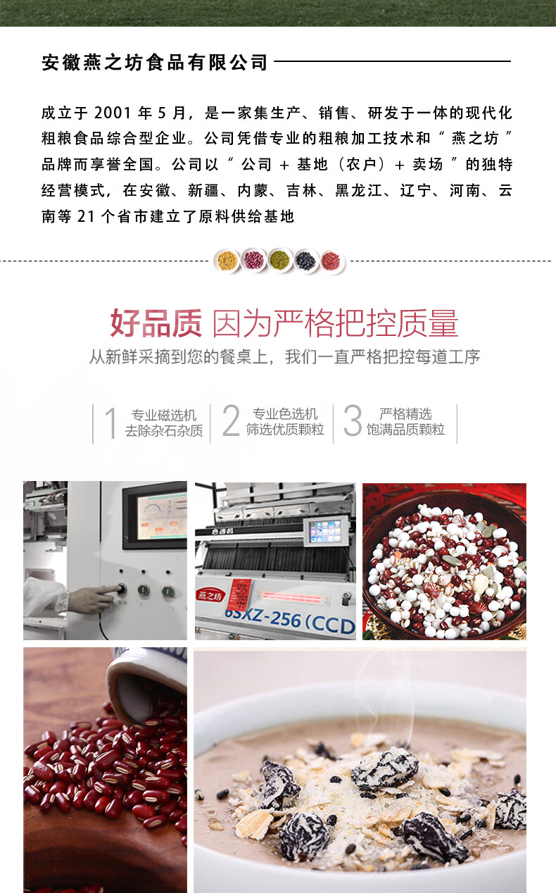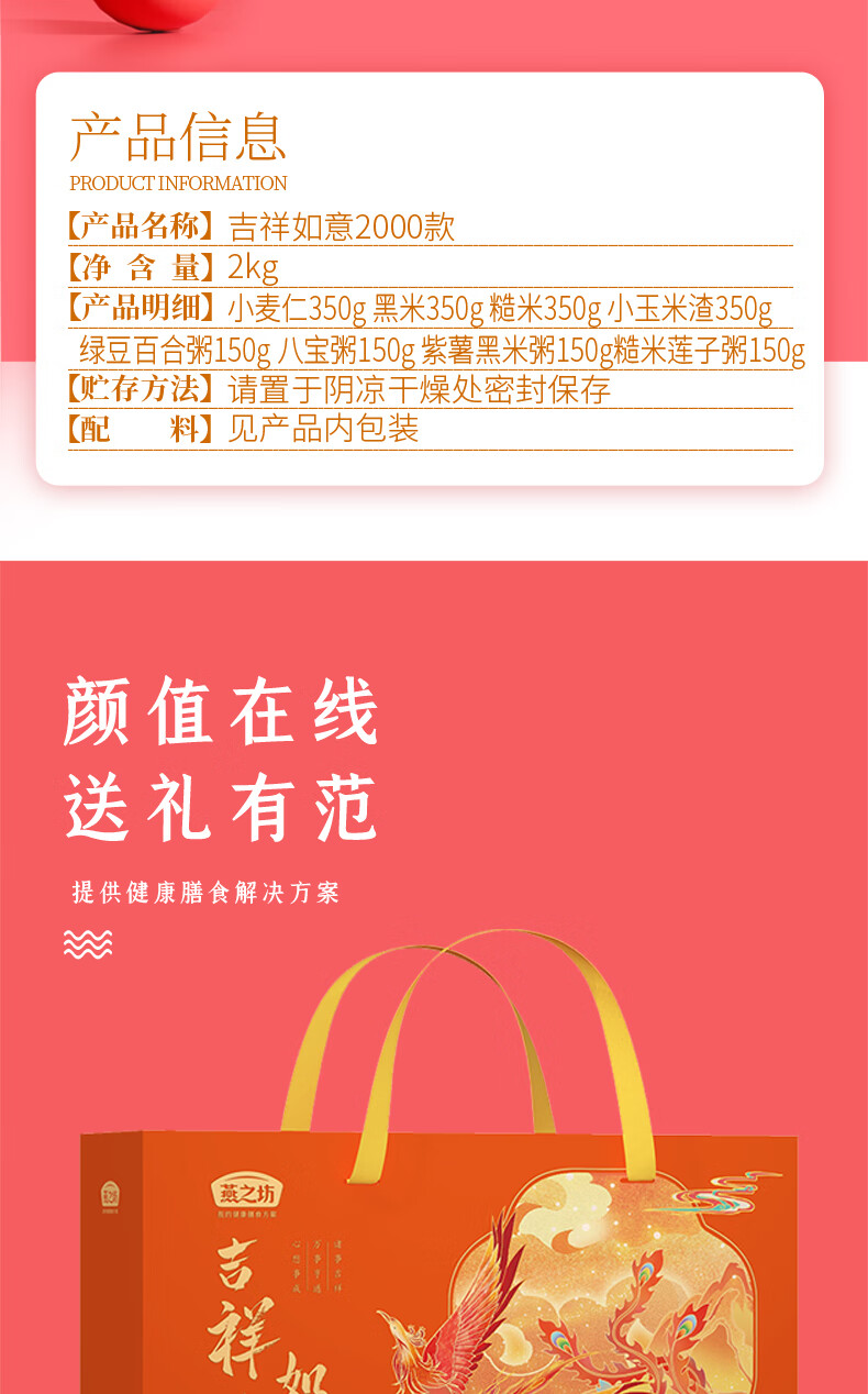小麦仁350g、黑米350g、糙米350g、小玉米渣350g、绿豆百合粥150g、八宝粥150g、紫薯黑米粥150g、糙米莲子粥150g