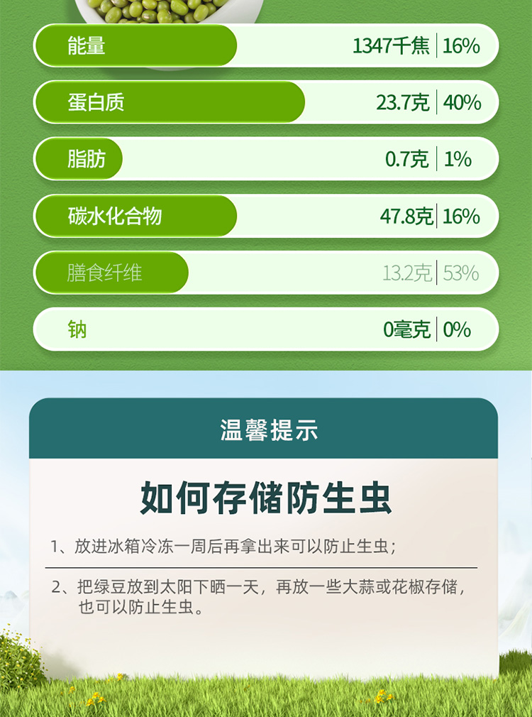 绿豆均匀饱满整齐度高,粒大皮薄易炖煮