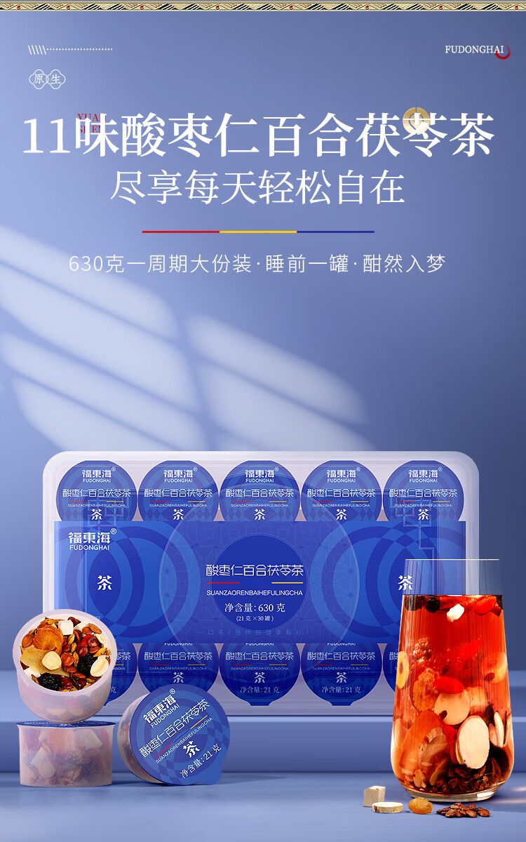 【福东海】酸枣仁百合茯苓茶630克/盒(小罐茶) FDH02010204