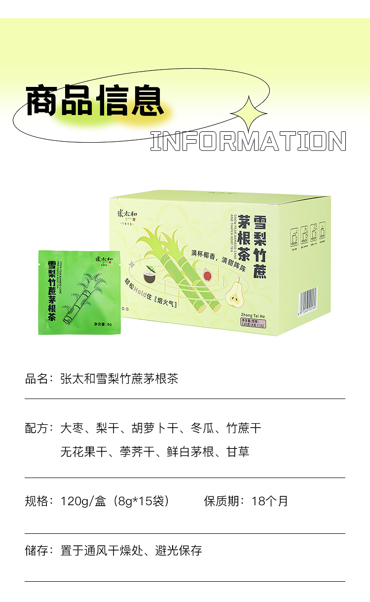 • 张太和 雪梨竹蔗茅根茶 120g(8g*15包) 三盒