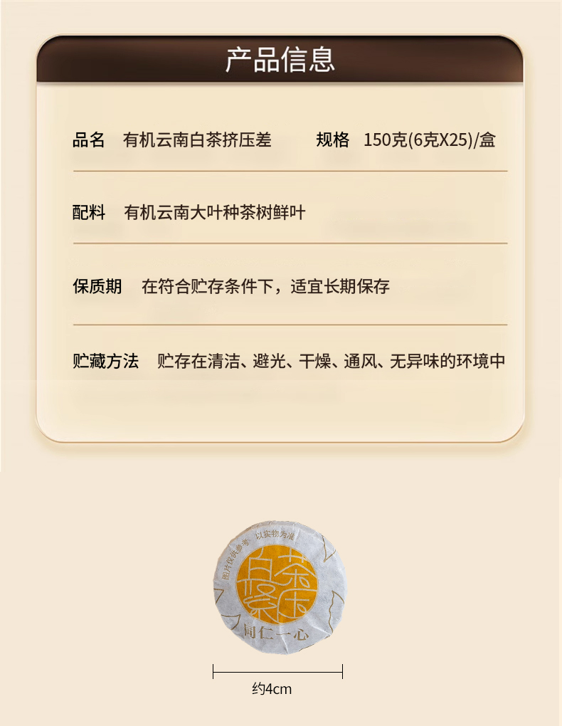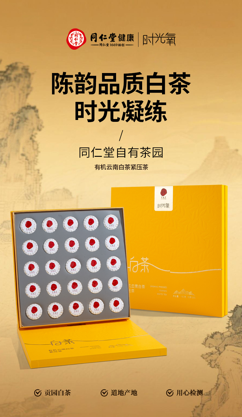 • 北京同仁堂时光氧有机云南白茶紧压茶150克 (6克*25)
