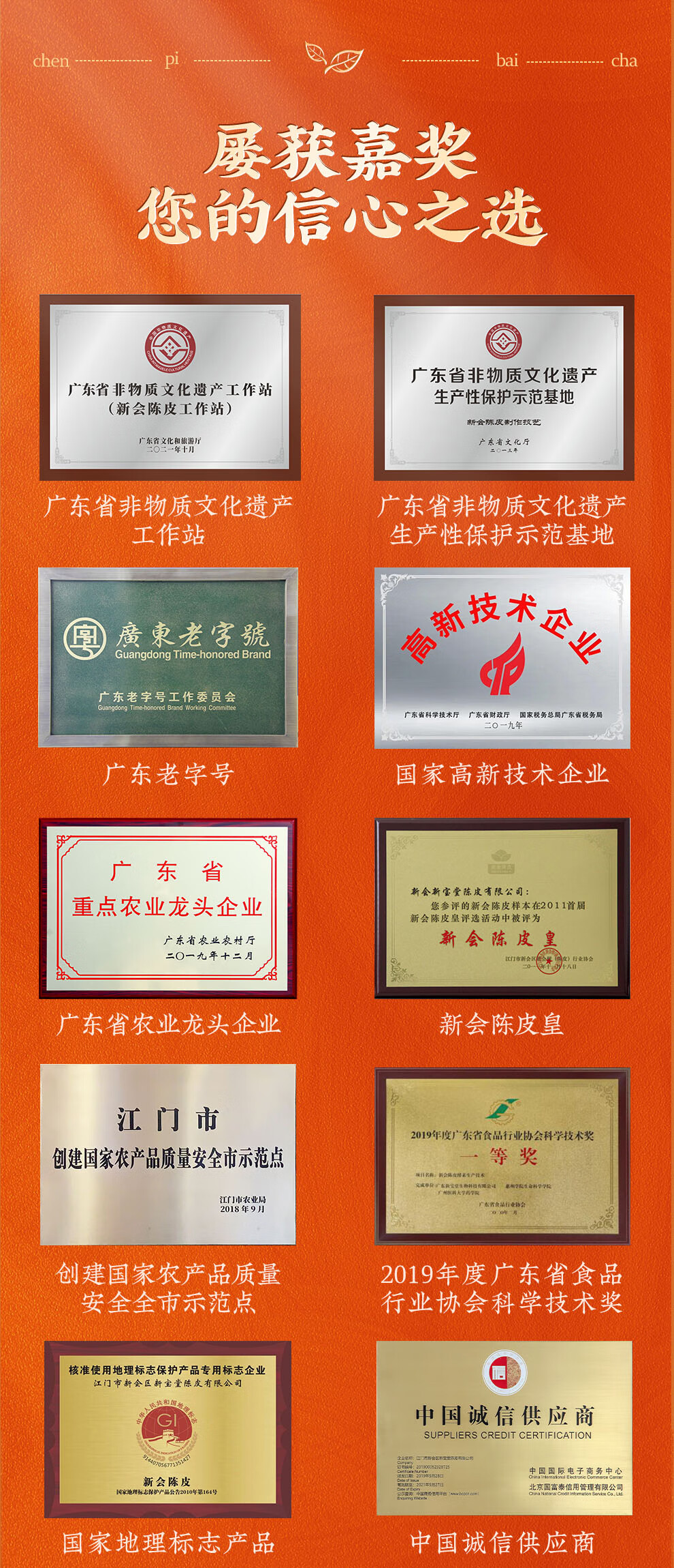 【新宝堂】陈皮白茶大礼盒25克*10盒