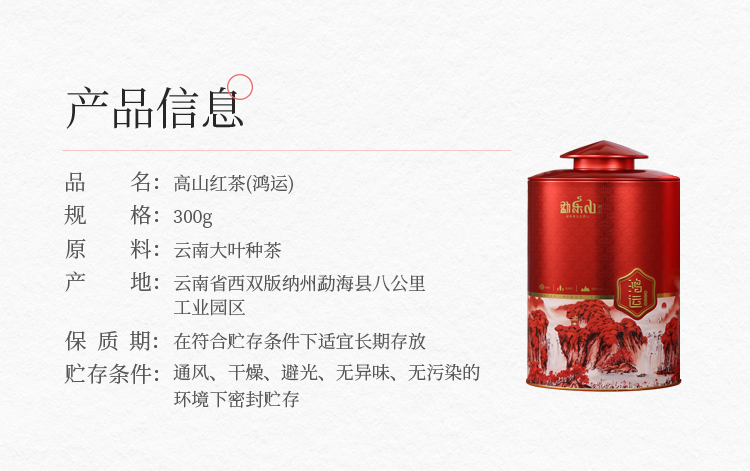 【勐乐山】2023高山红茶(鸿运)圆铁罐装300g