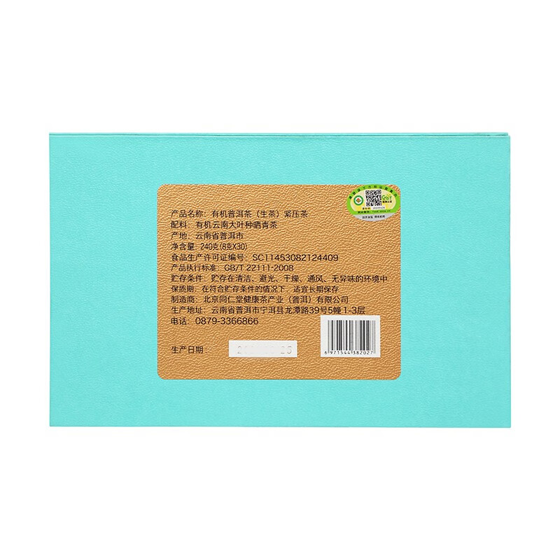北京同仁堂有机普洱 (生茶)紧压茶240g(8g*30)盒