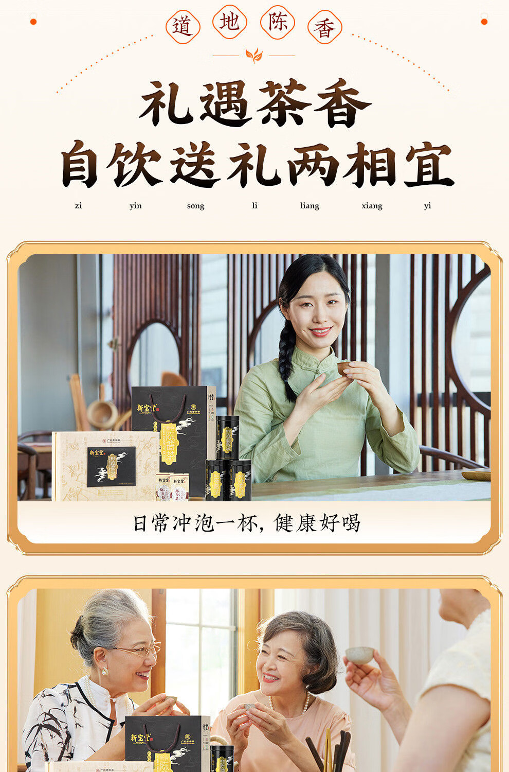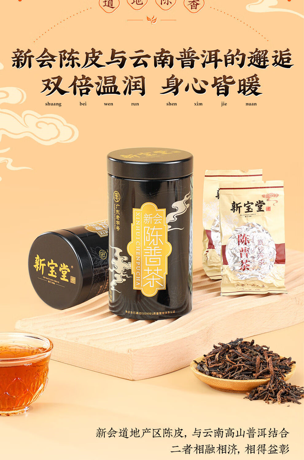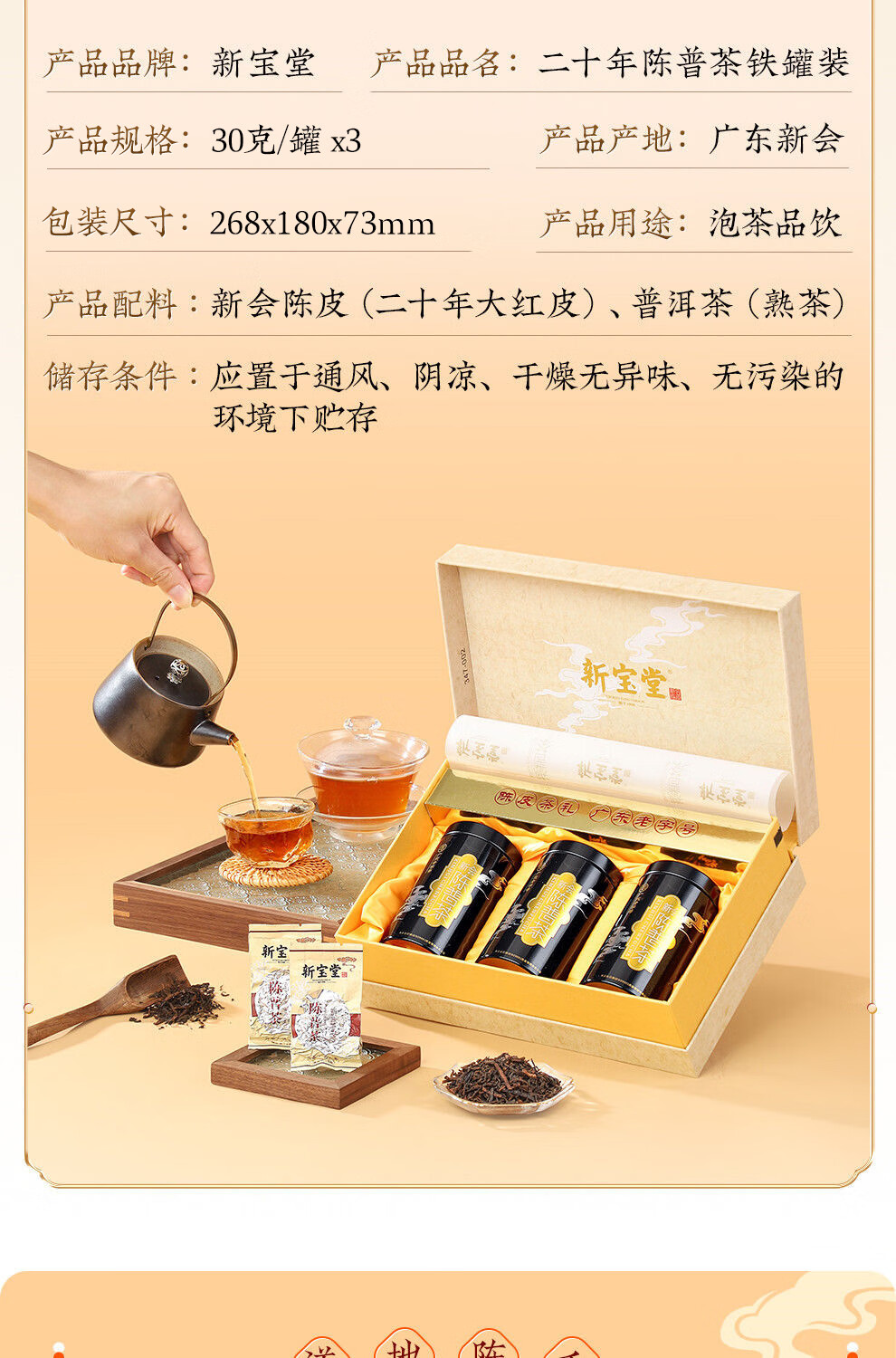 【新宝堂】 二十年陈皮 普洱茶铁罐礼盒90g