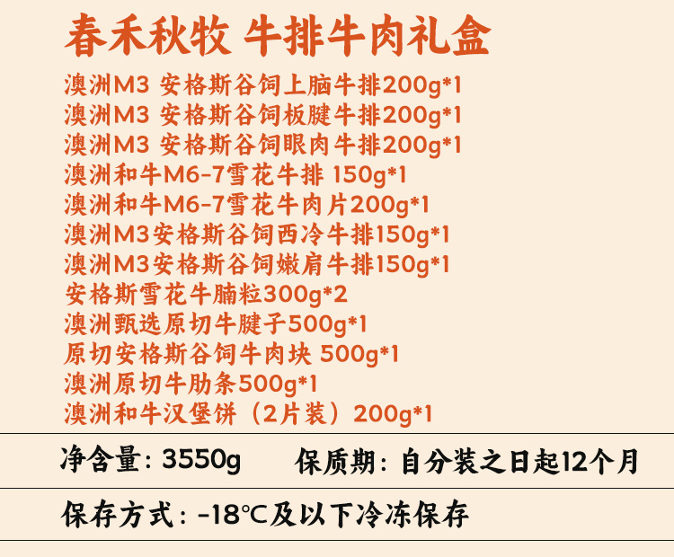 春禾秋牧 可溯源高品质畅销牛肉礼包3550g
