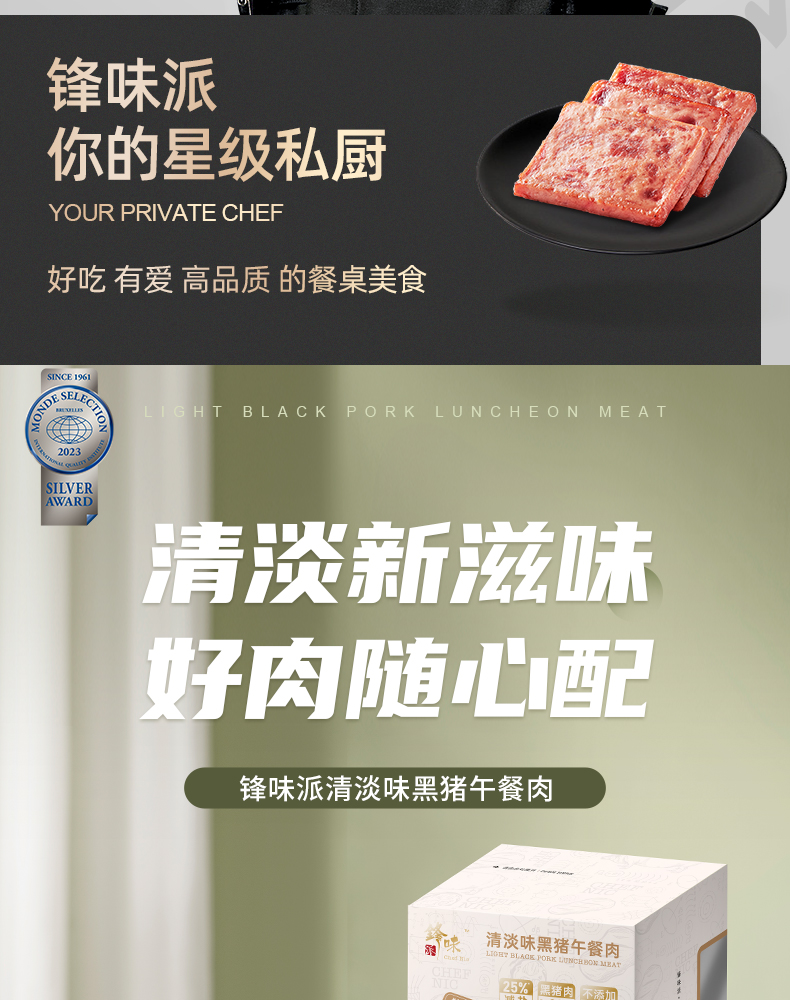 锋味派清淡味黑猪午餐肉320g