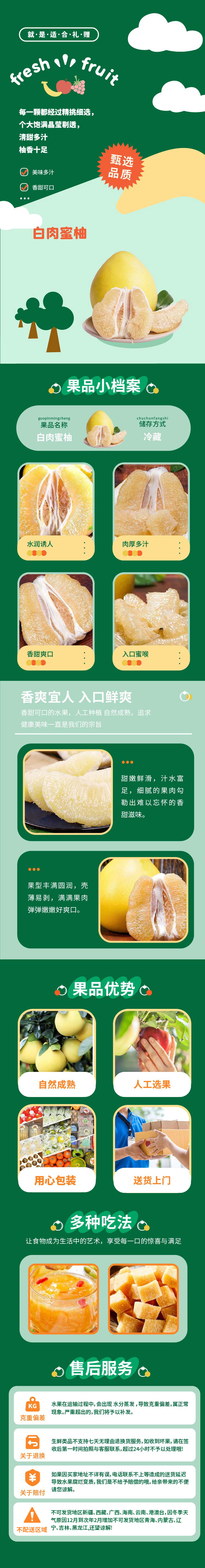 1、果实多呈梨形或卵圆形,果肉雪白莹润,质地柔软化渣,咬下时汁水饱满,酸甜比例适中,不齁不涩,自带清新柚香;