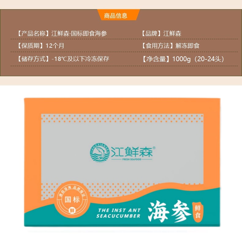 江鲜森国标·鲜食海参1388款 1000g(16-24头)