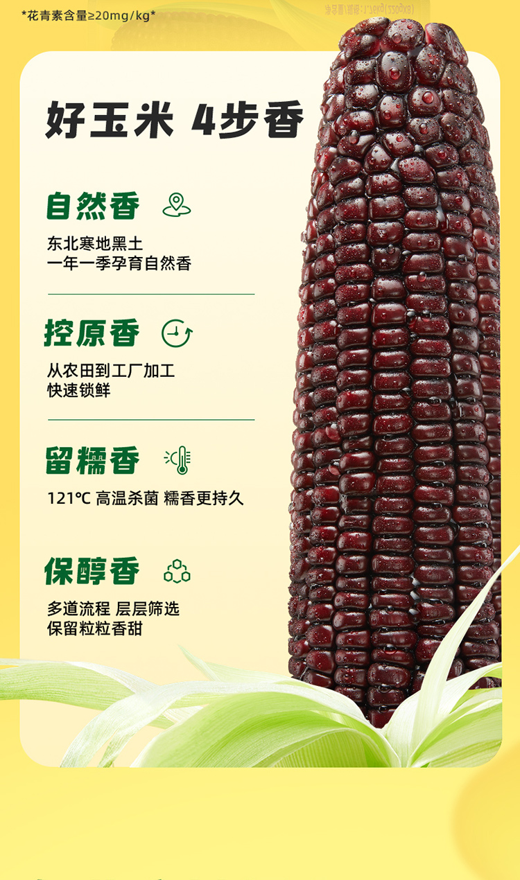 含花青素,甜糯清香,口感Q弹,高温杀菌留糯香。香糯劲道,自然原香