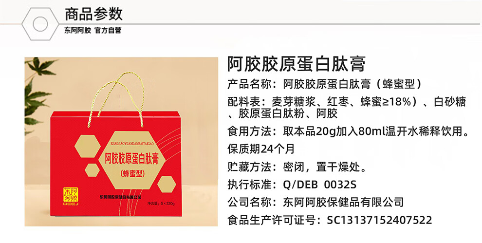 • 东阿阿胶 阿胶胶原蛋白肽膏(蜂蜜型)220g*5瓶