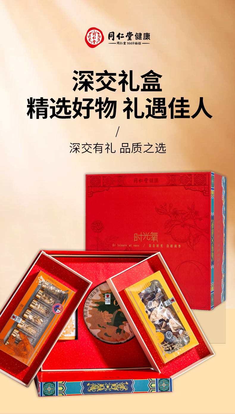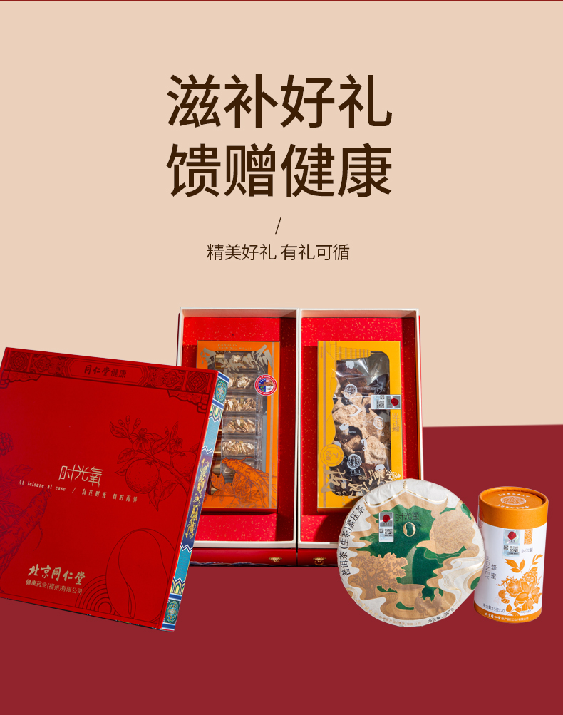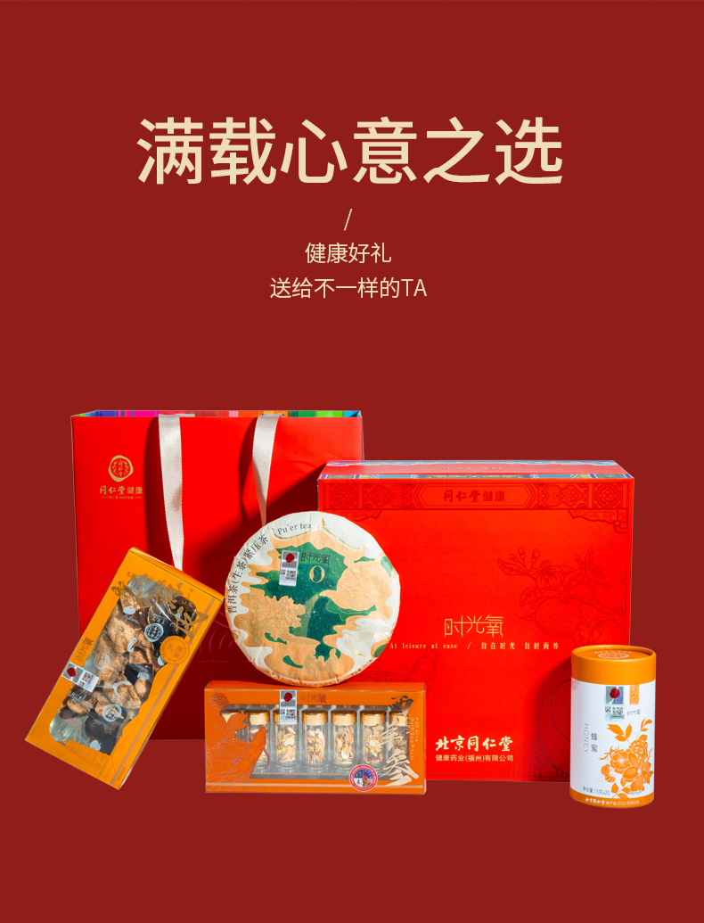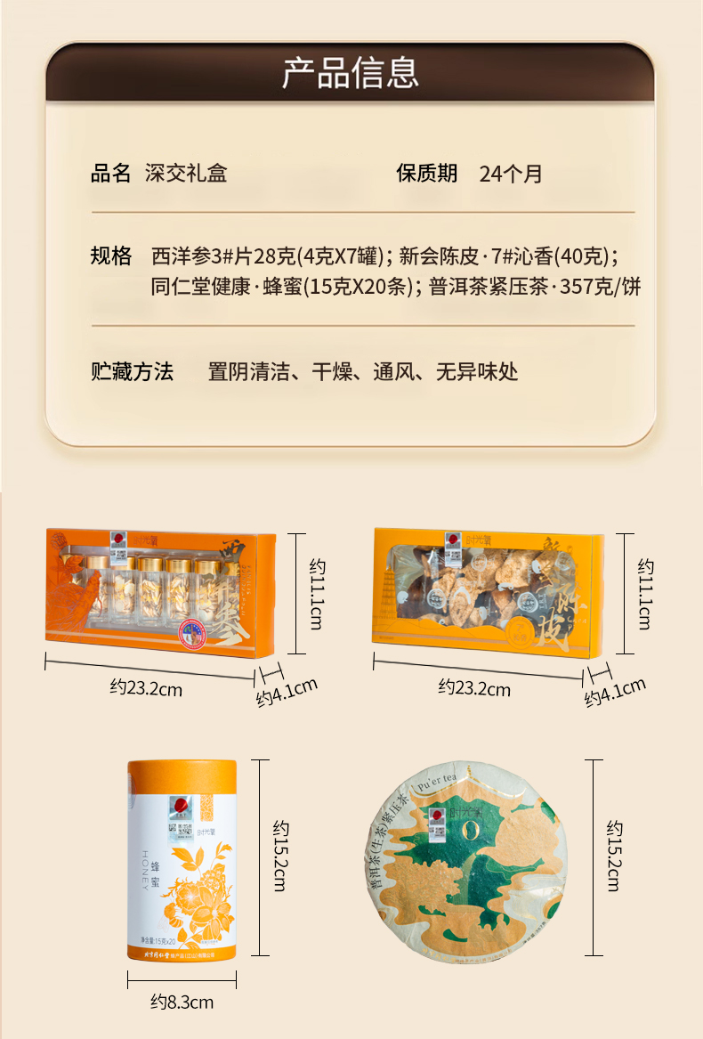 北京同仁堂时光氧深交礼盒(蜂蜜15g*20/普洱紧压茶357g/7#新会陈皮40g/西洋参3#片28g)