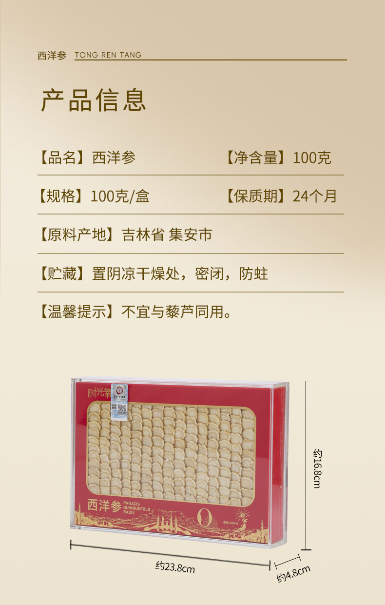 北京同仁堂时光氧国产西洋参片 2号选片100克
