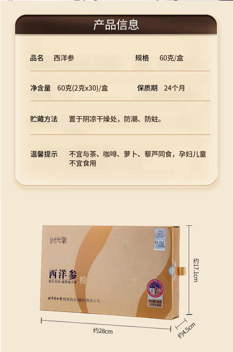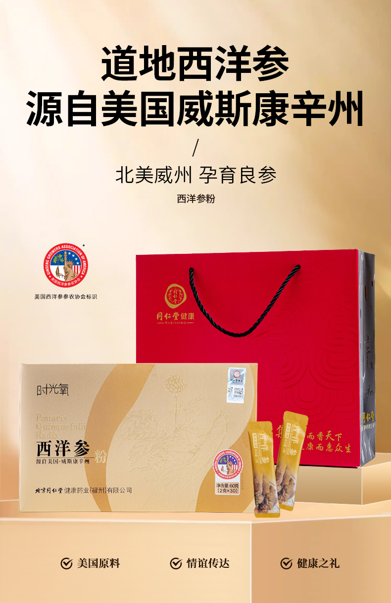 • 北京同仁堂时光氧美国西洋参粉60克(2克*30袋)