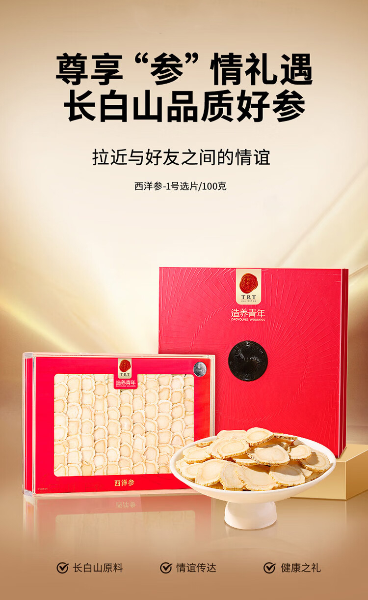 北京同仁堂造养青年国产西洋参片 (黑金标款)100克