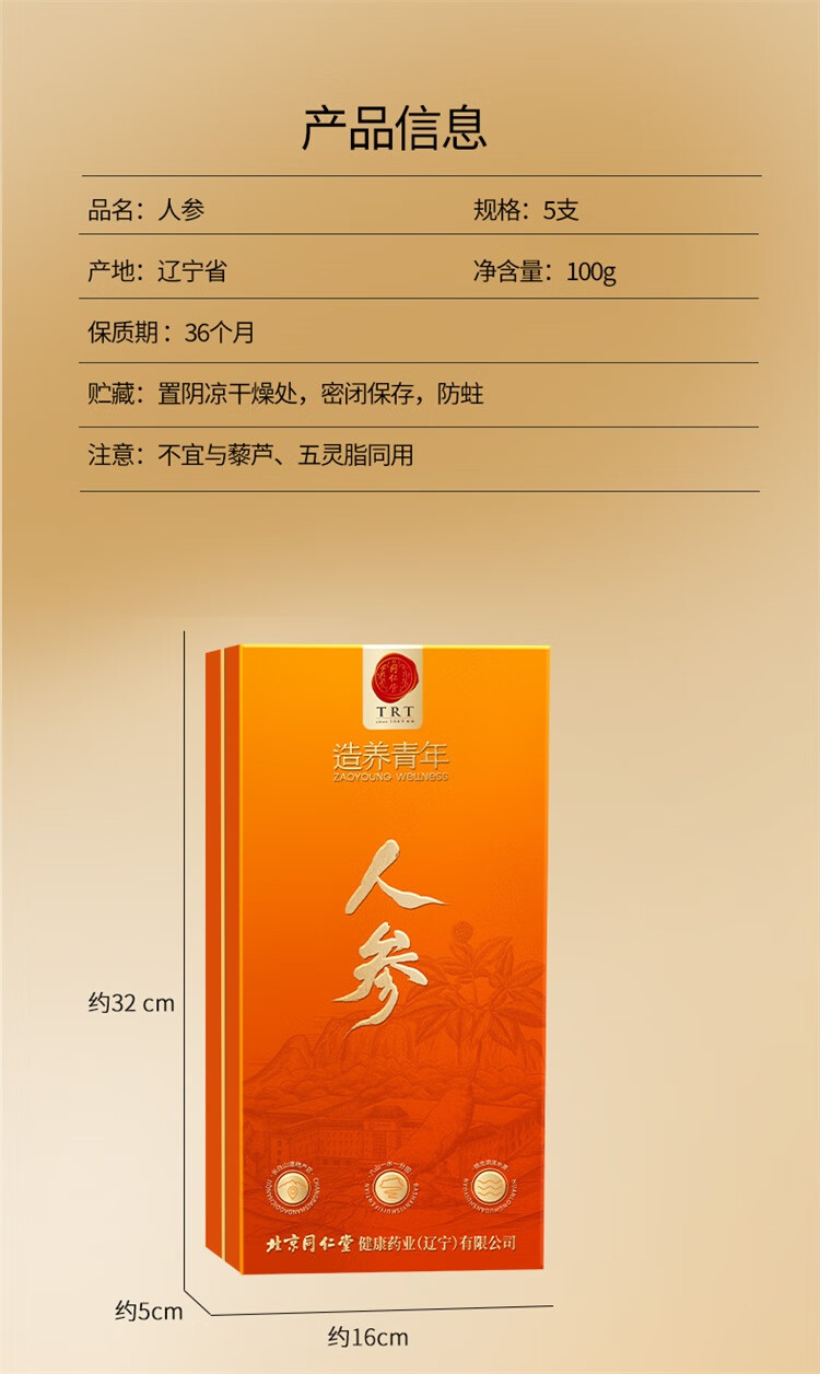北京同仁堂造养青年人参礼盒5支100克