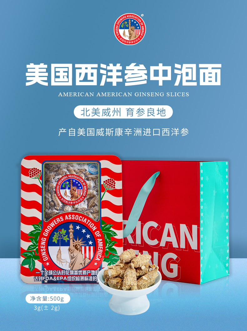 美国西洋参参农协会中泡面3g(±2g)500克/盒
