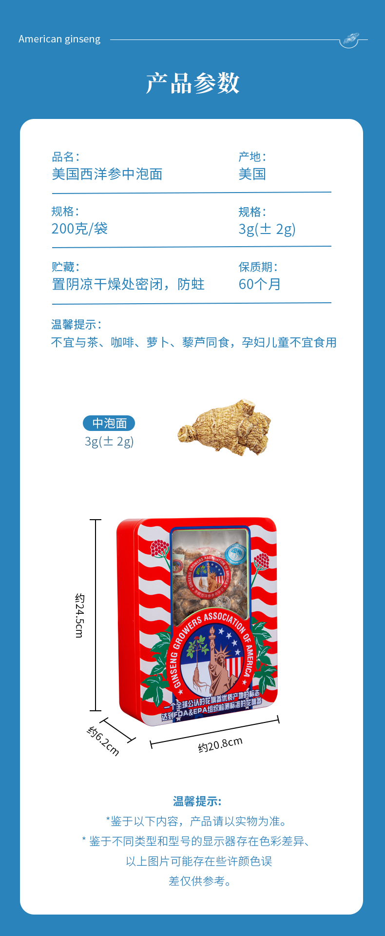 美国西洋参参农协会中泡面3g(±2g)200克/盒