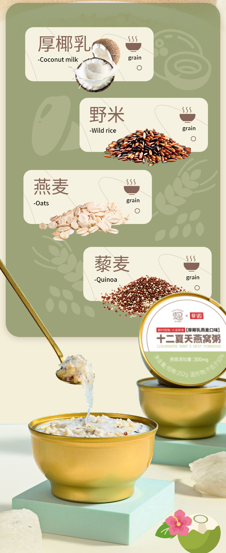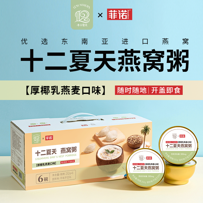 十二夏天燕窝粥厚椰乳燕麦口味 252g*6碗/盒