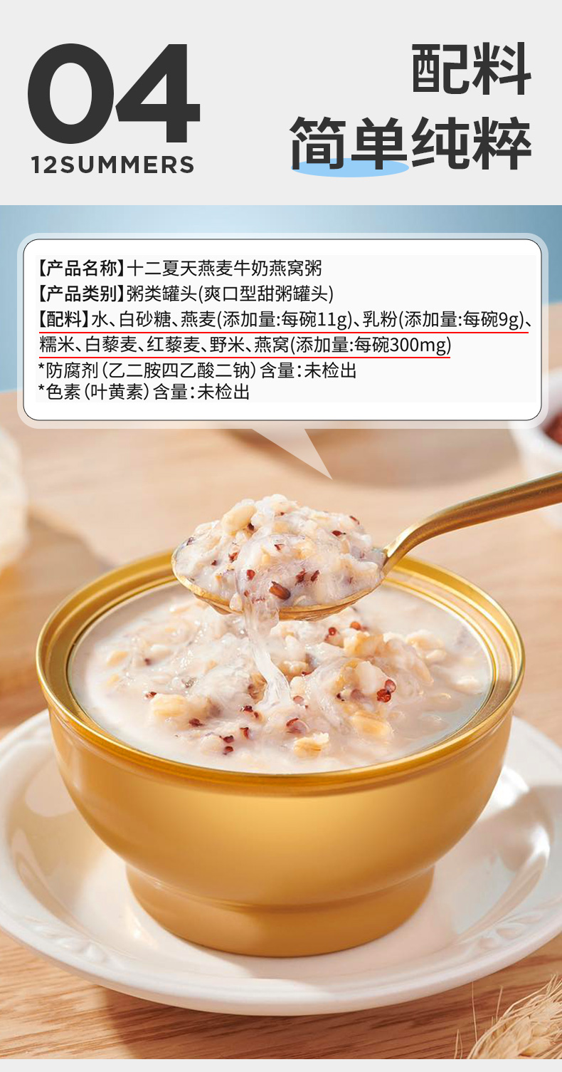 十二夏天燕窝粥燕麦牛奶口味 252g*6碗/盒
