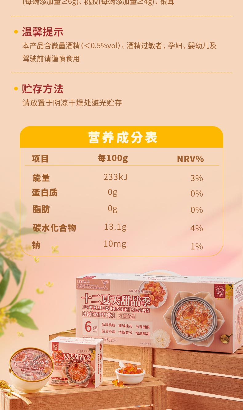 十二夏天甜品季桂花酒酿桃胶180克/碗,6碗/盒