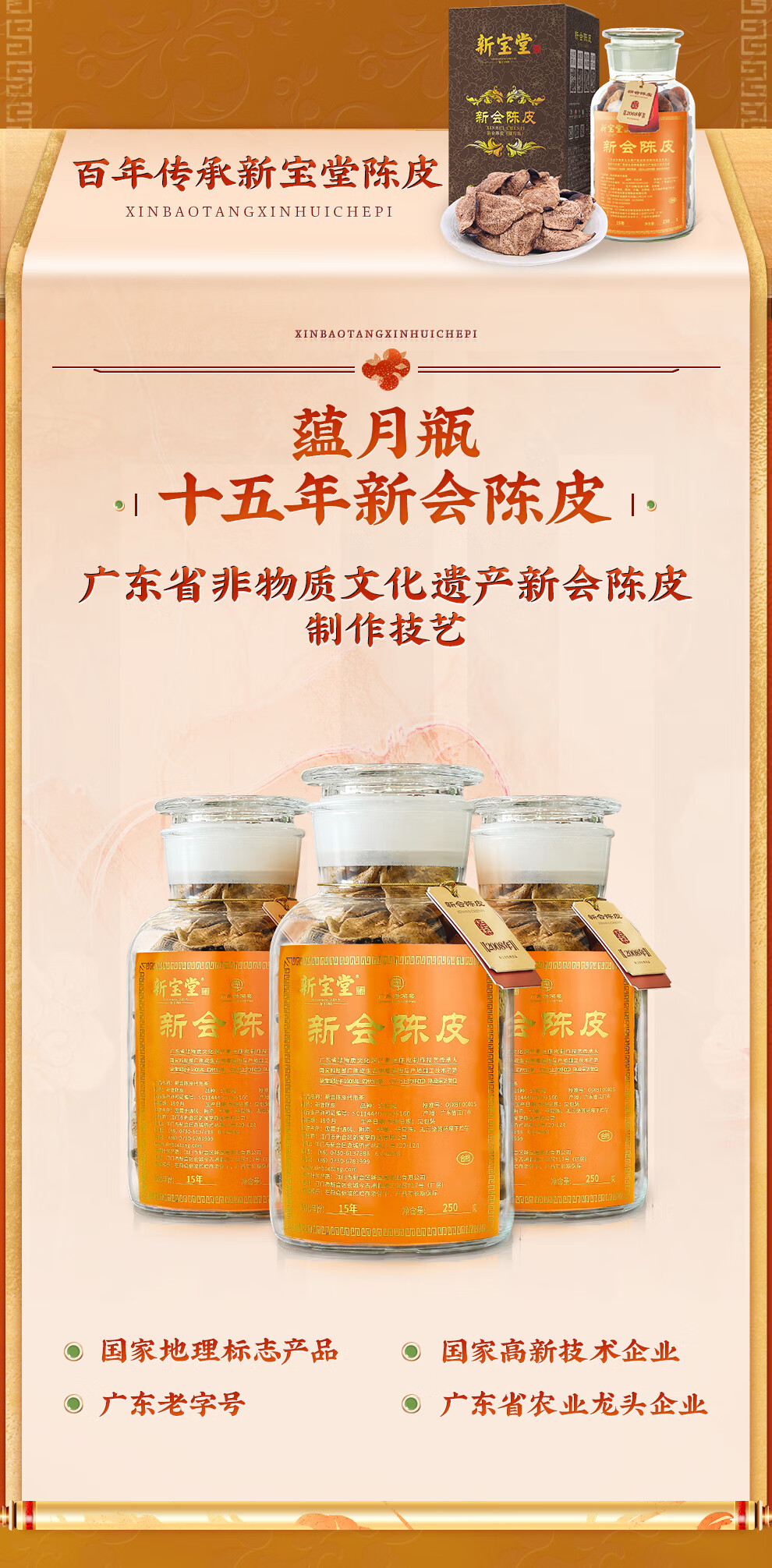 【新宝堂】 十五年陈皮 蕴月瓶250g