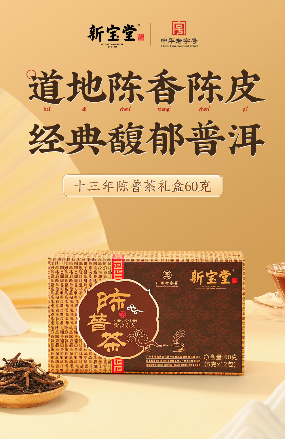 【新宝堂】 十三年新会陈皮 普洱熟茶礼盒60g