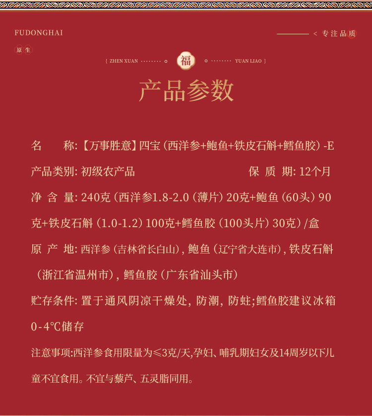 福东海【万事胜意】四宝(西洋参+鲍鱼+铁皮石斛+鳕鱼胶)-E