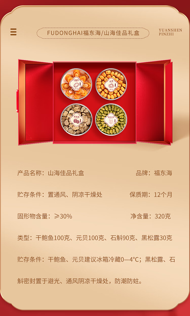 (黑松露30克+鲍鱼60头100克+元贝150头100克+铁皮石斛90克)