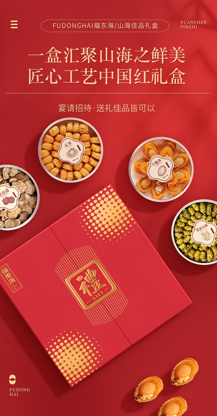 福东海【鸿福】黑松露鲍鱼元贝铁皮石斛四拼礼盒