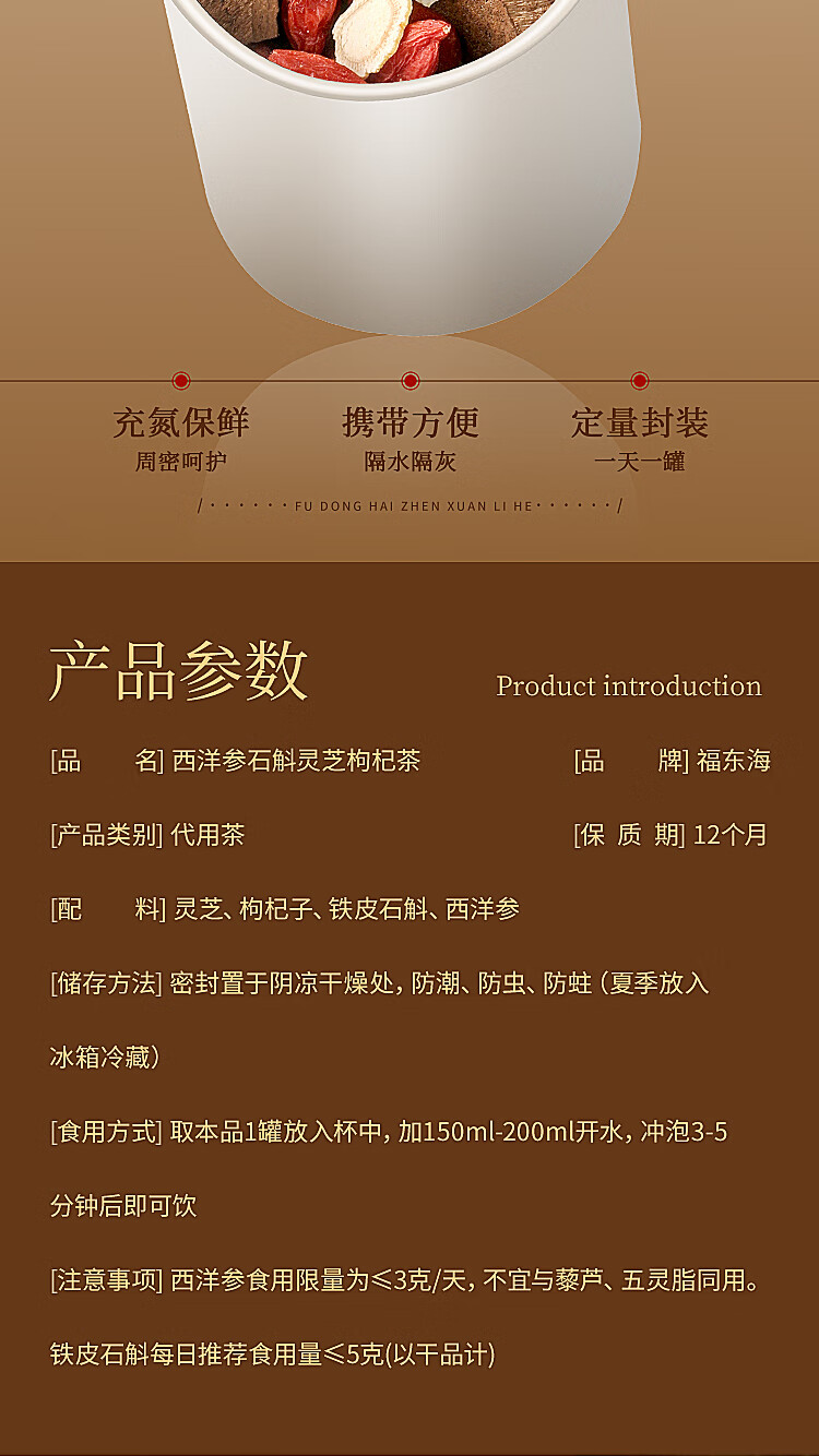 西洋参石斛灵芝枸杞小罐茶200克/盒(10克*20罐)