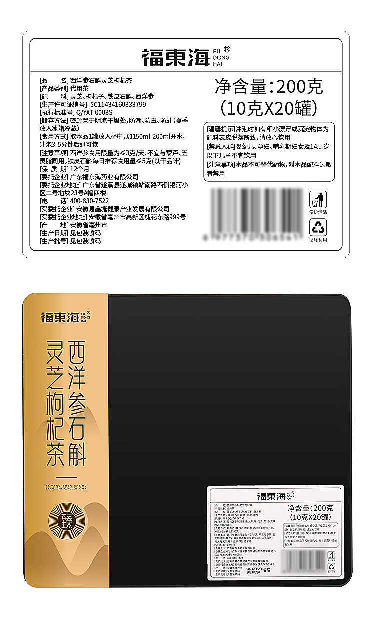 【福东海】西洋参石斛灵芝枸杞小罐茶礼盒