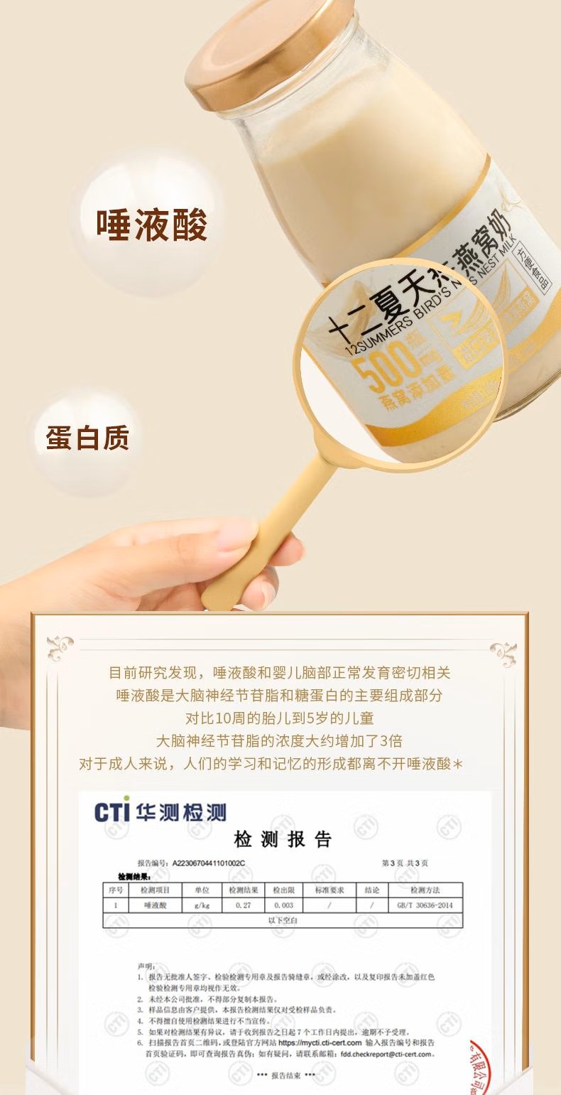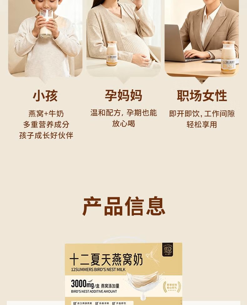 十二夏天牛奶燕窝 180g*6瓶/盒