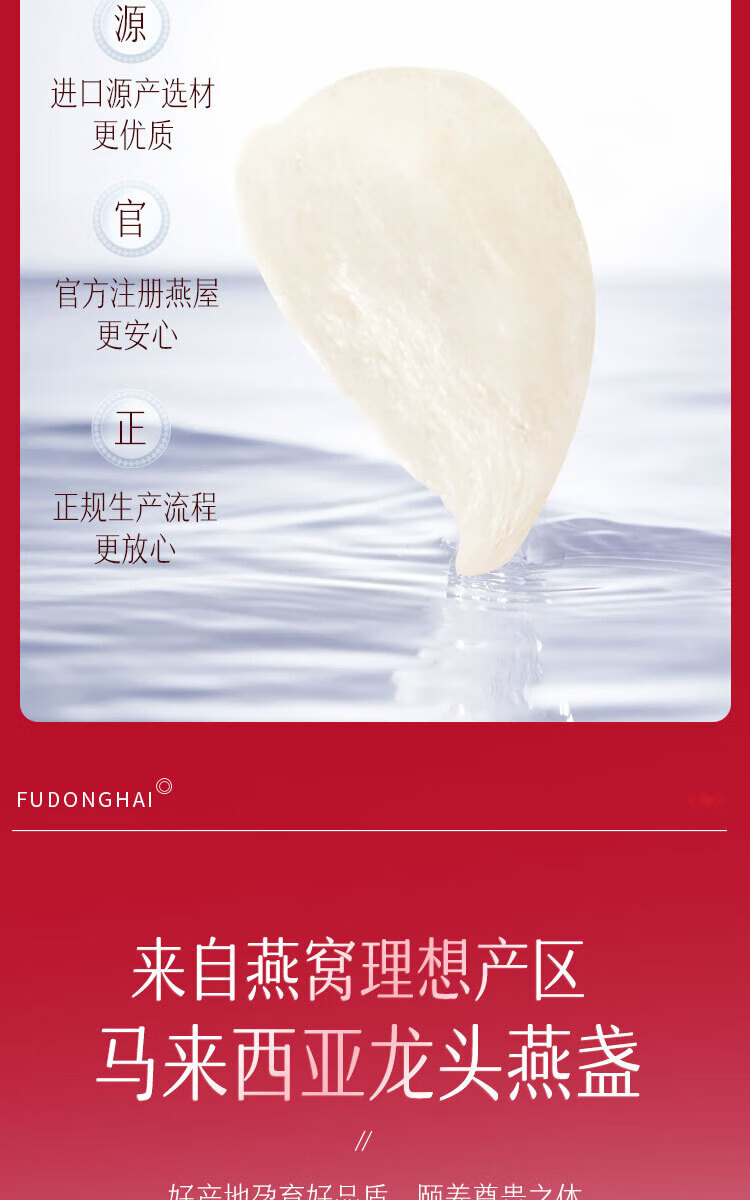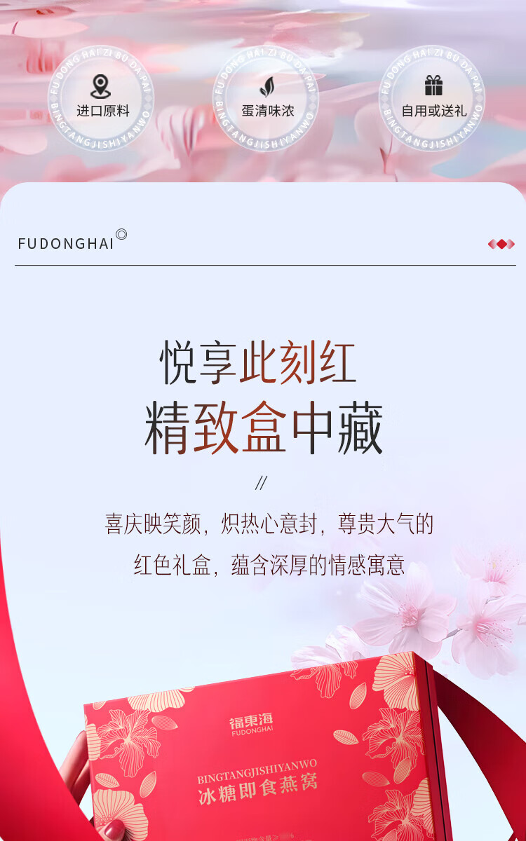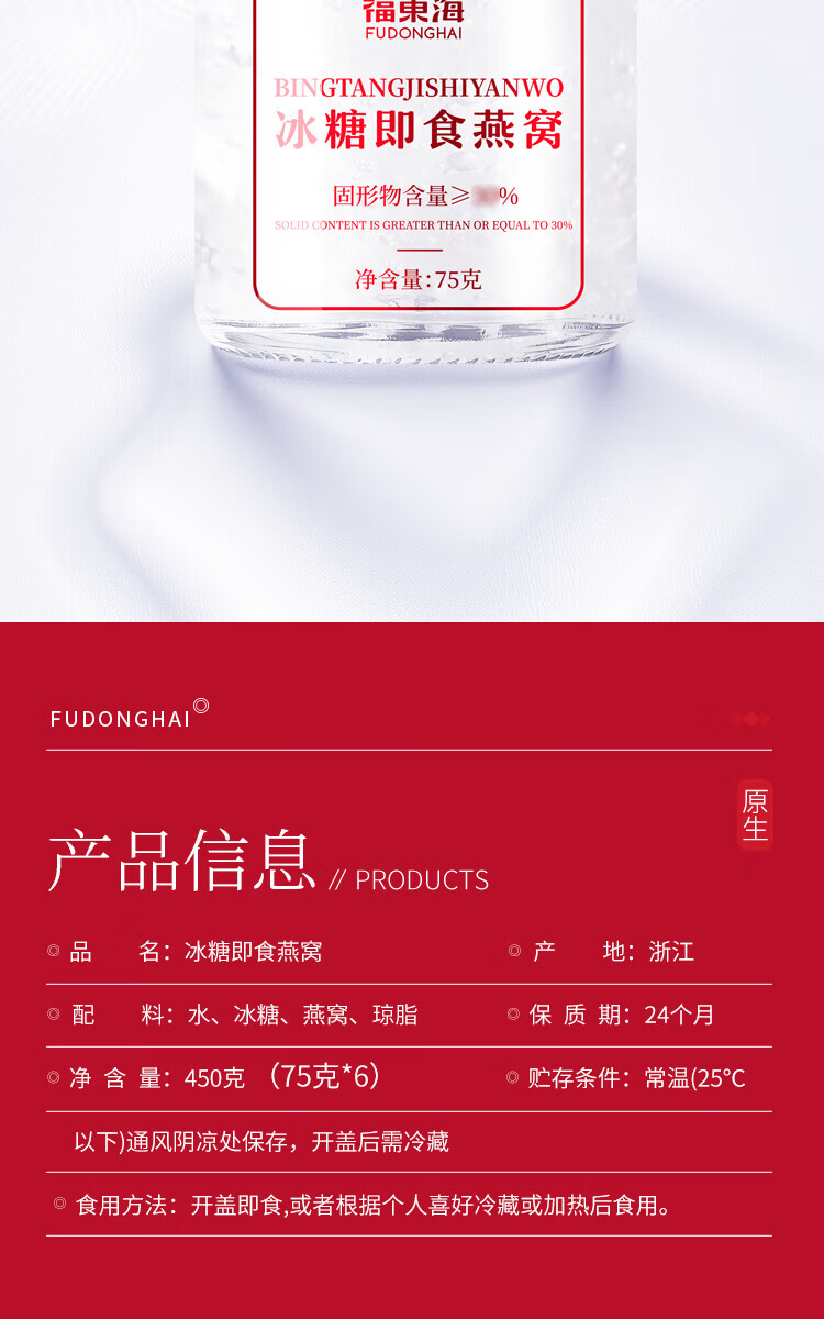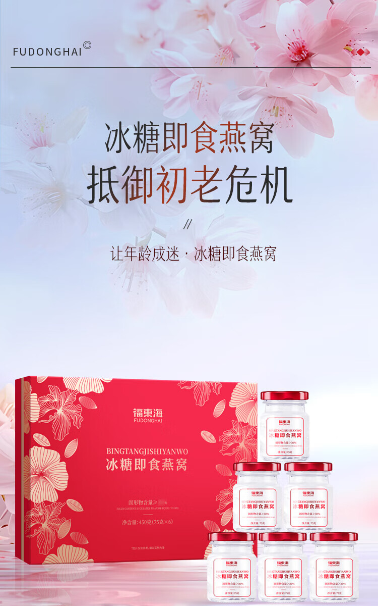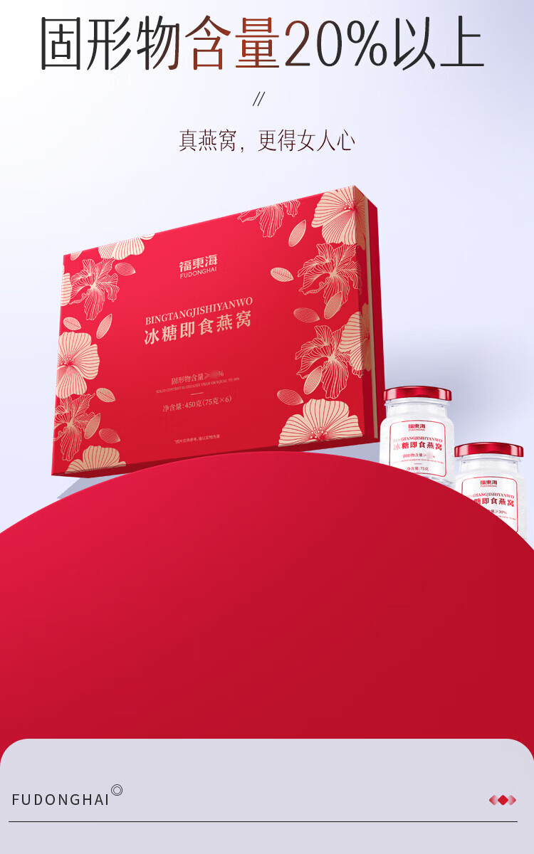 【福东海-特渠】冰糖即食燕窝450克(75克x6瓶)--固形物30%