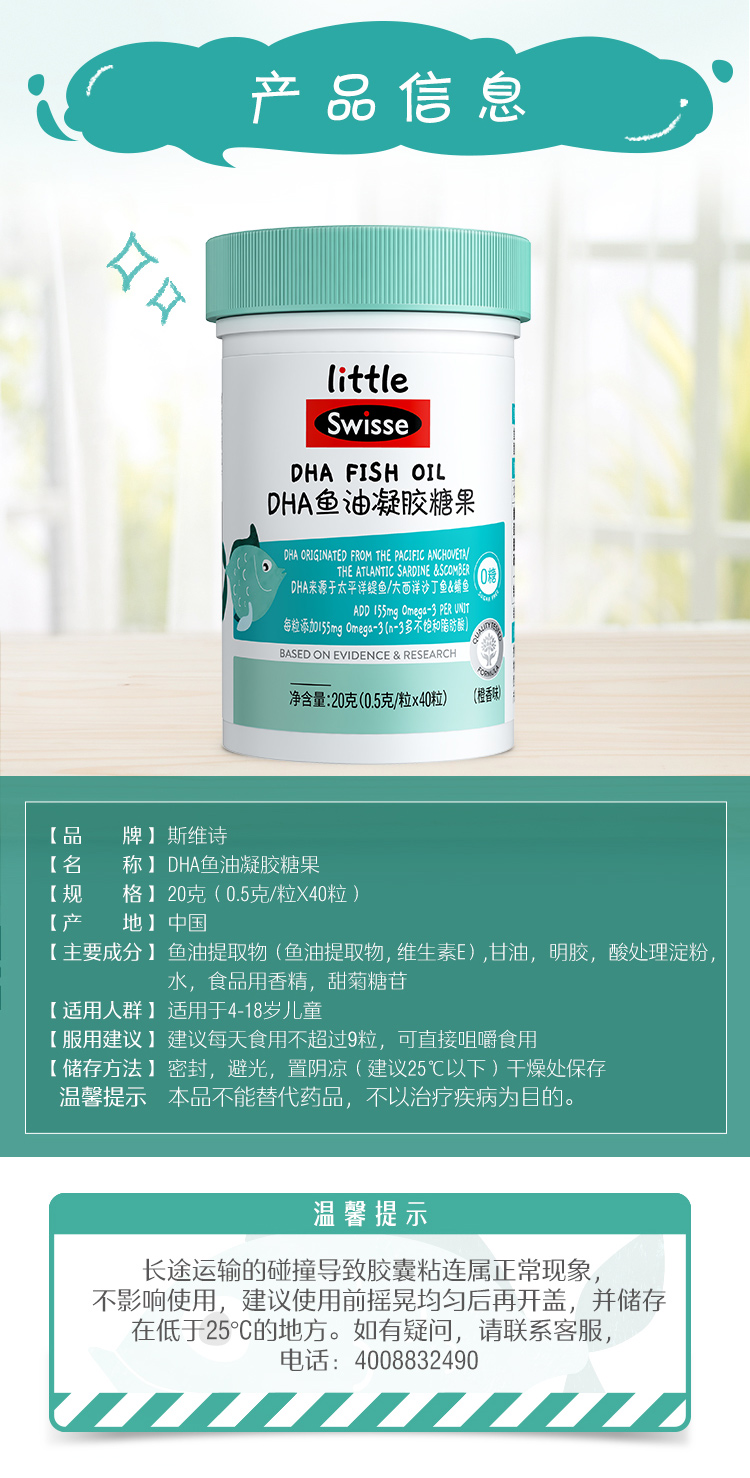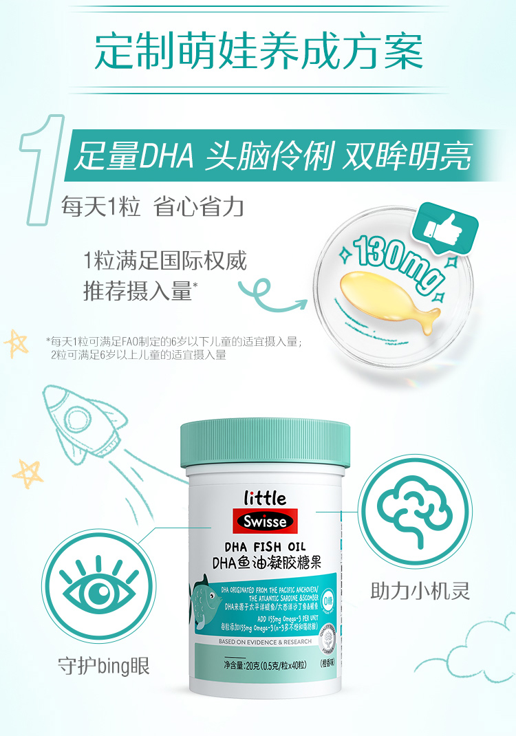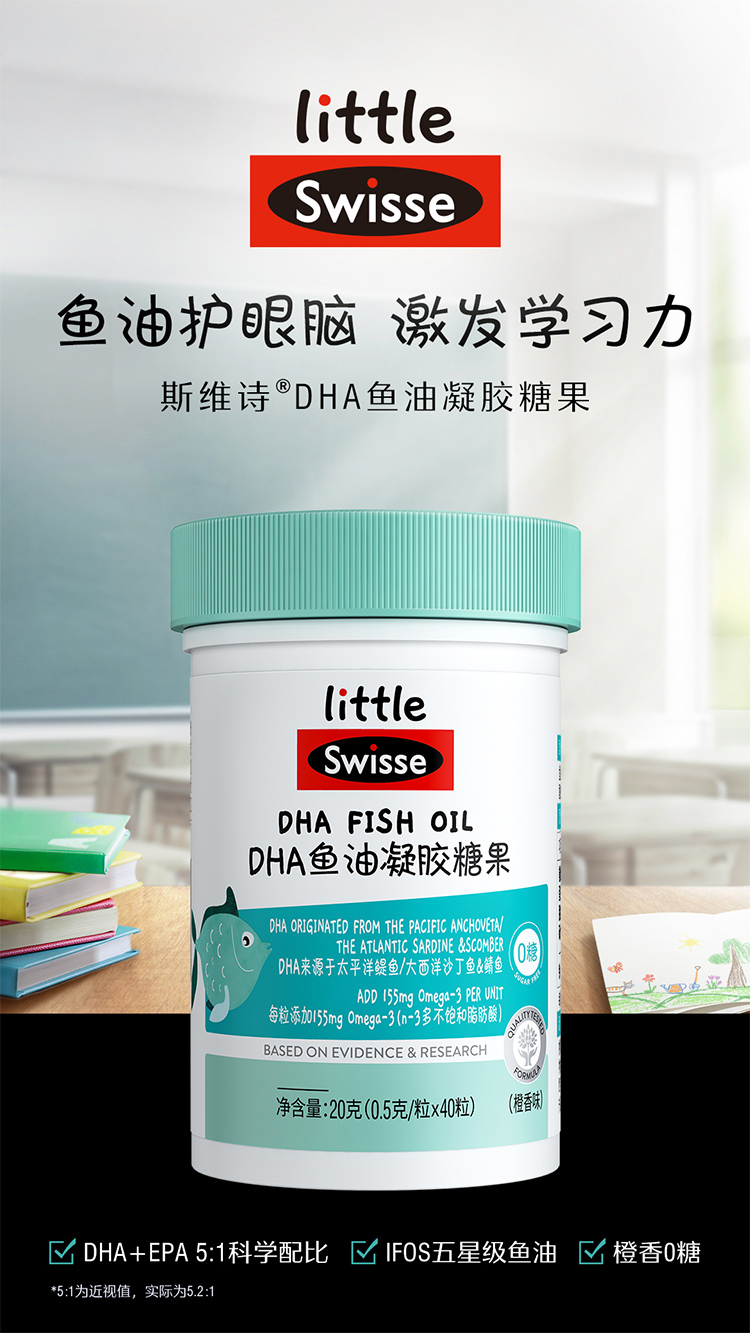 • Swisse斯维诗小小斯维诗DHA鱼油凝胶糖果(橙香味) 40粒装