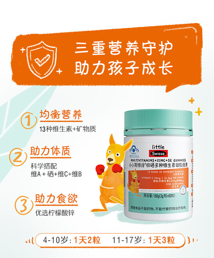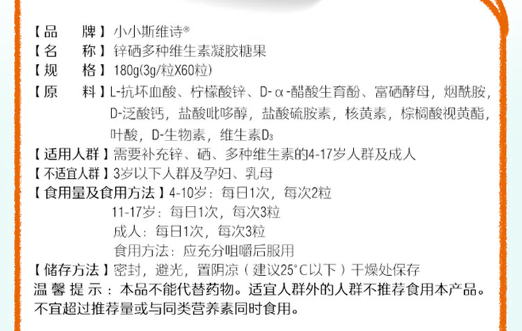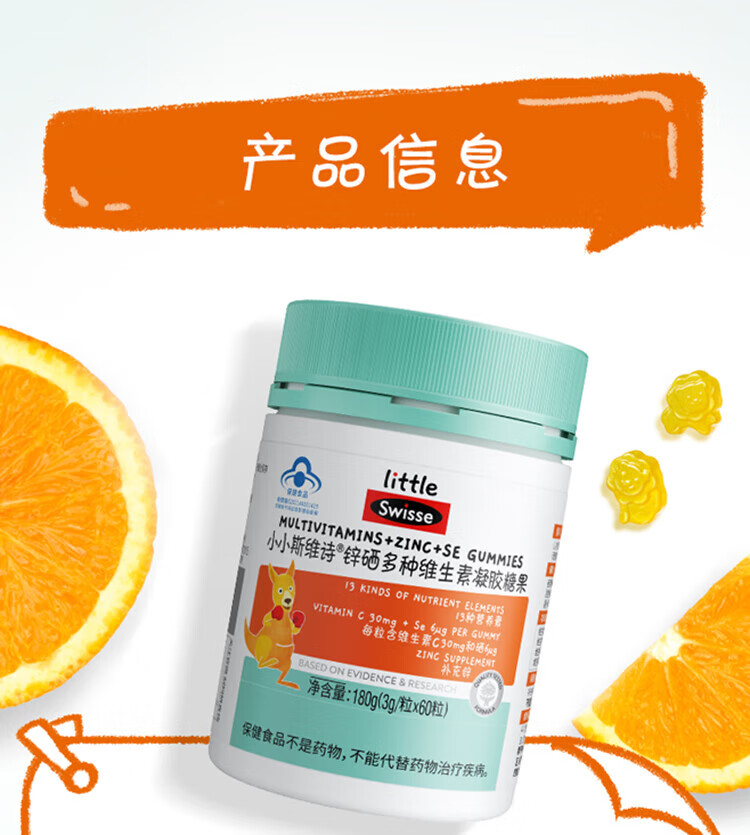 • Swisse小小斯维诗锌硒多种维生素凝胶糖果60粒装
