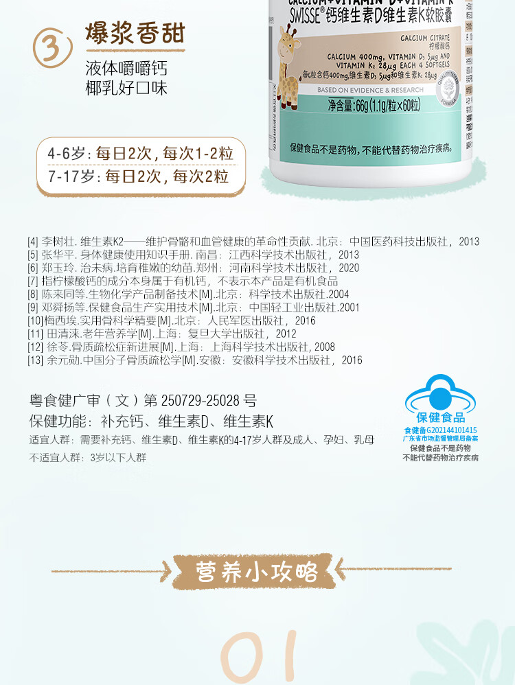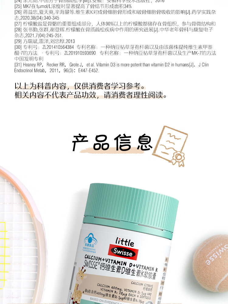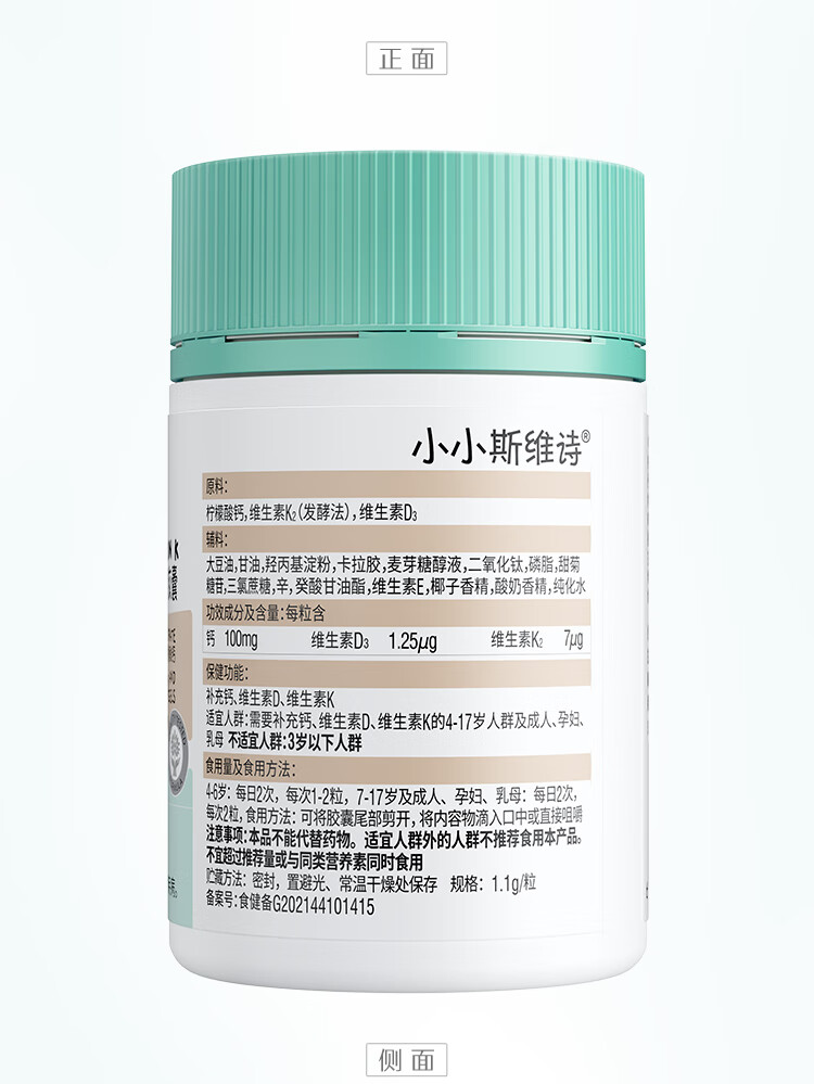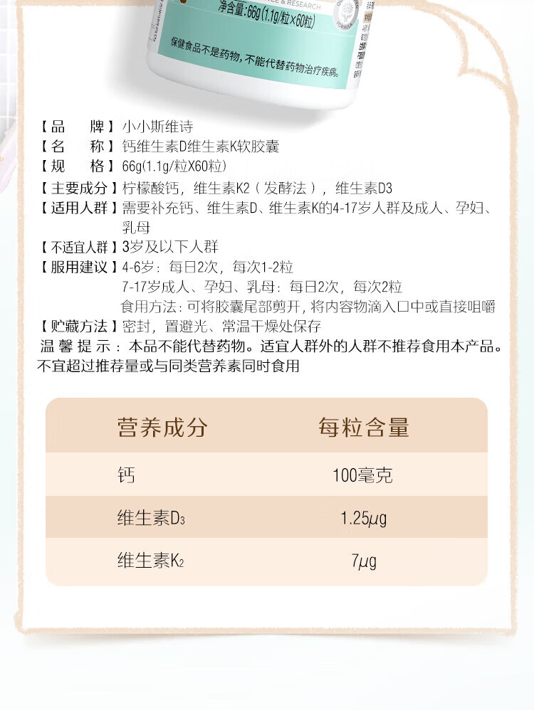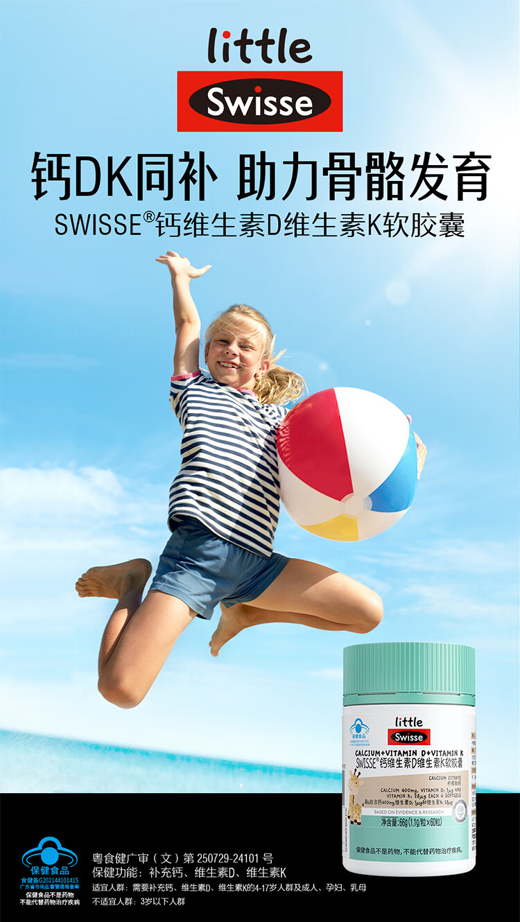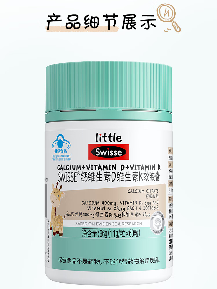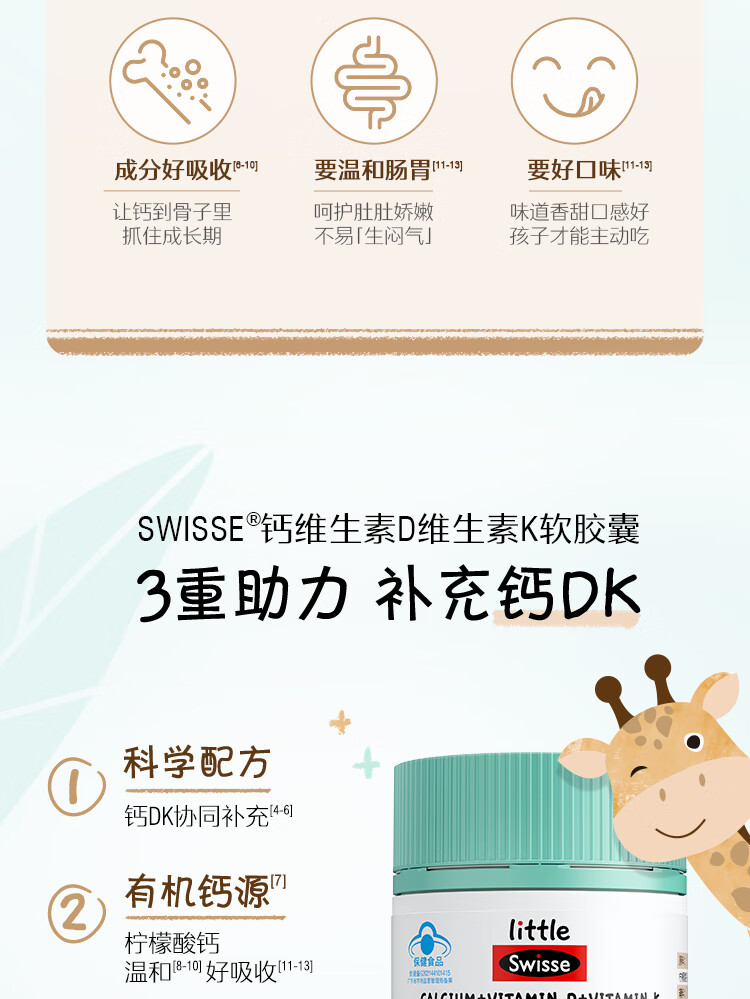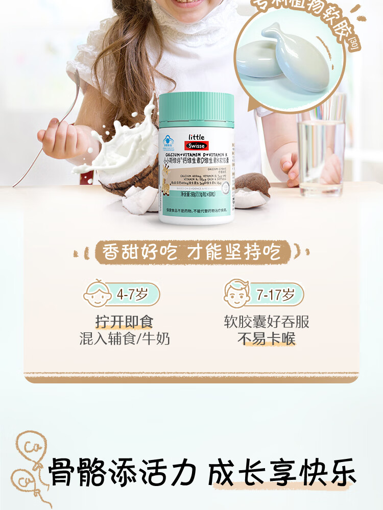 • Swisse小小斯维诗钙维生素D维生素K软胶囊 60粒装