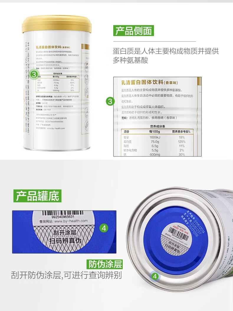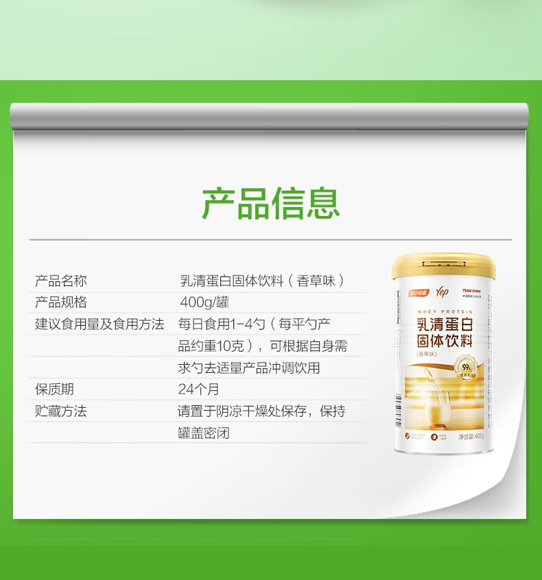 • 汤臣倍健乳清蛋白固体饮料(香草味)(400g/高盖)