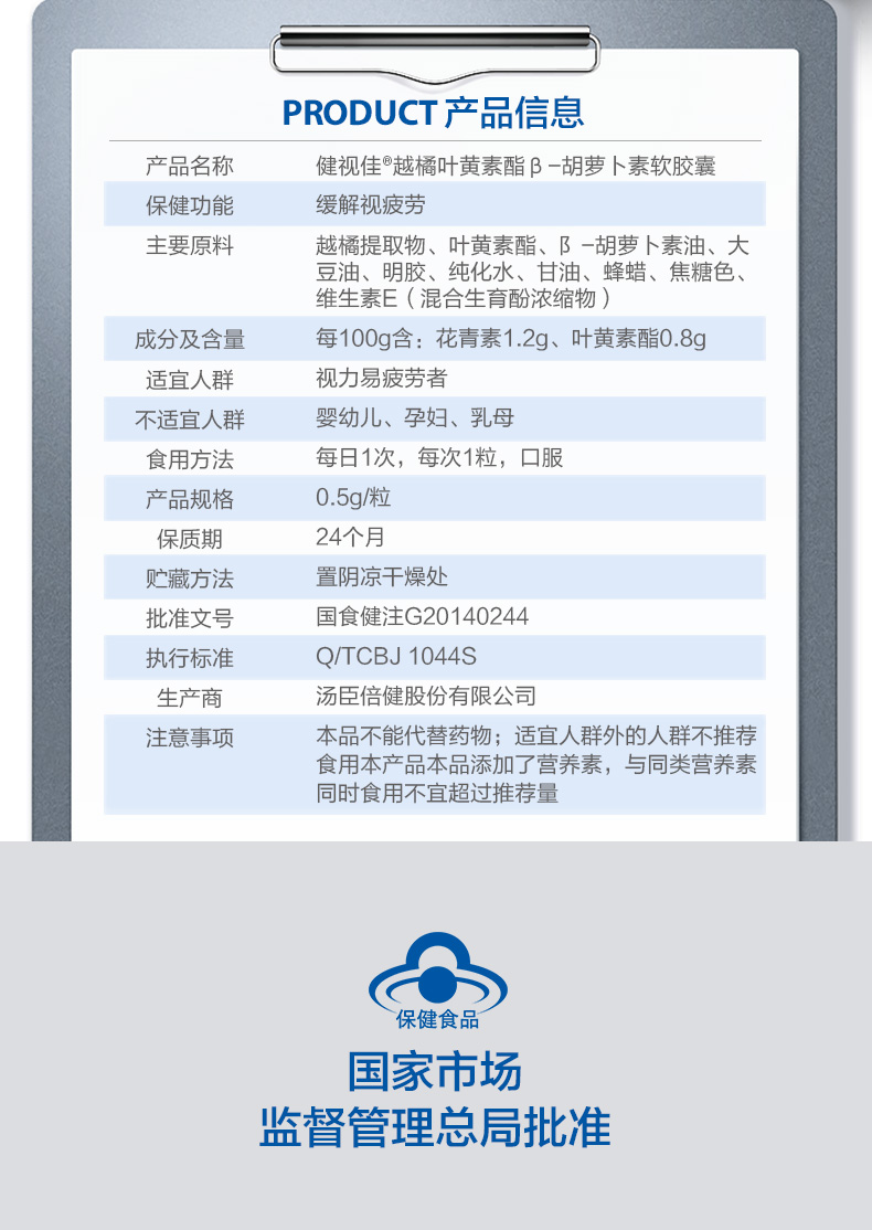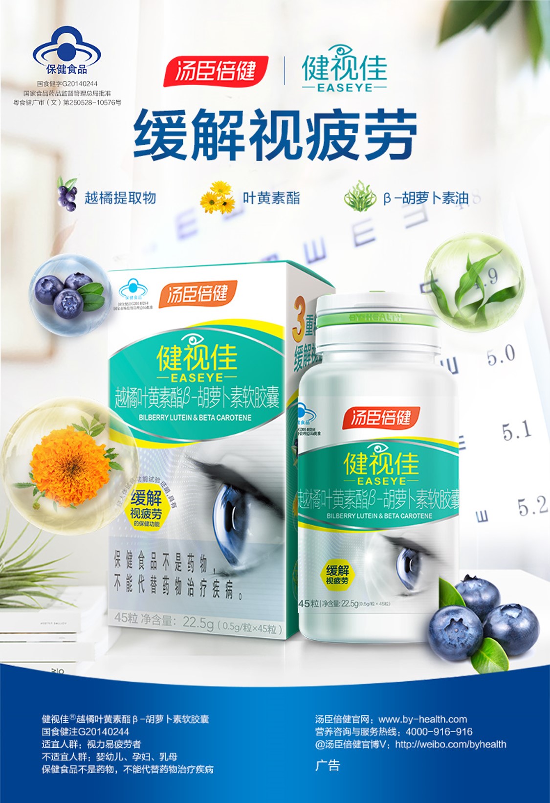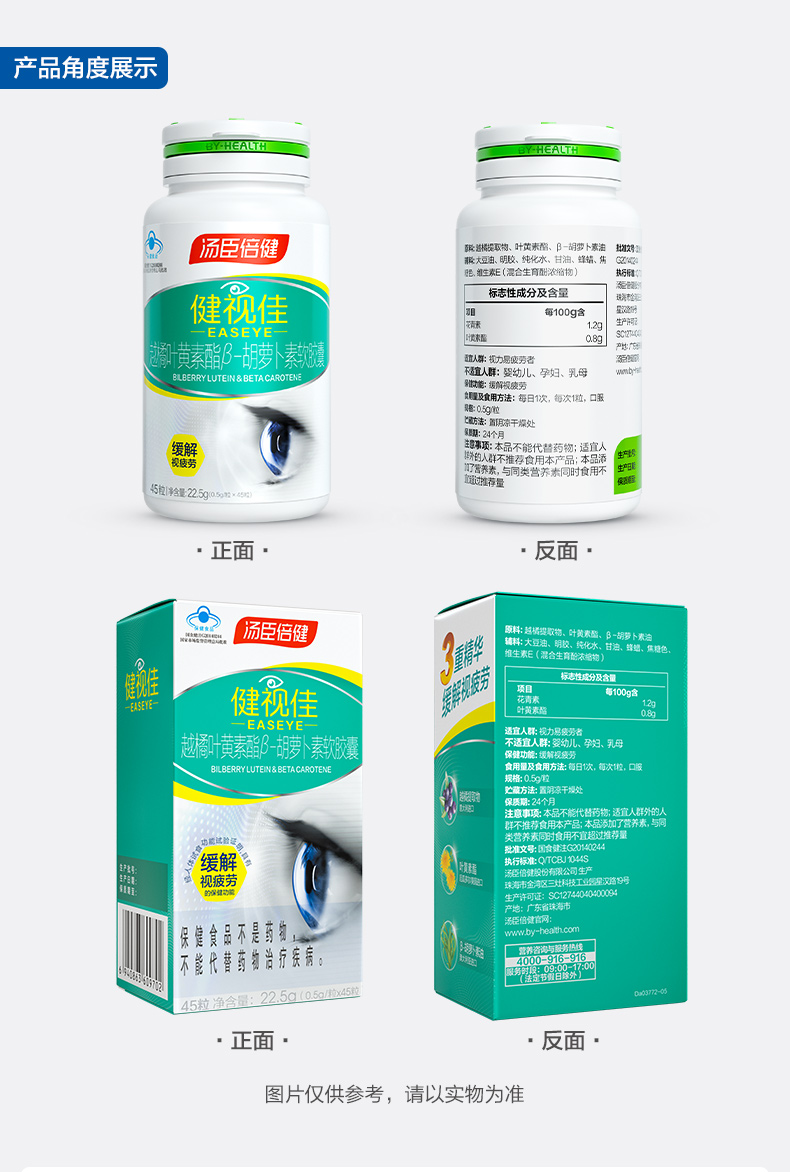 • 汤臣倍健越橘叶黄素酯β-胡萝卜素软胶囊盒装(45粒)