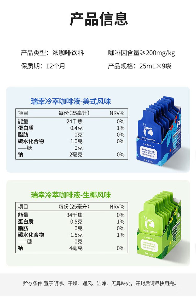 瑞幸咖啡冷萃咖啡液美式风味25ml*9 RX0031