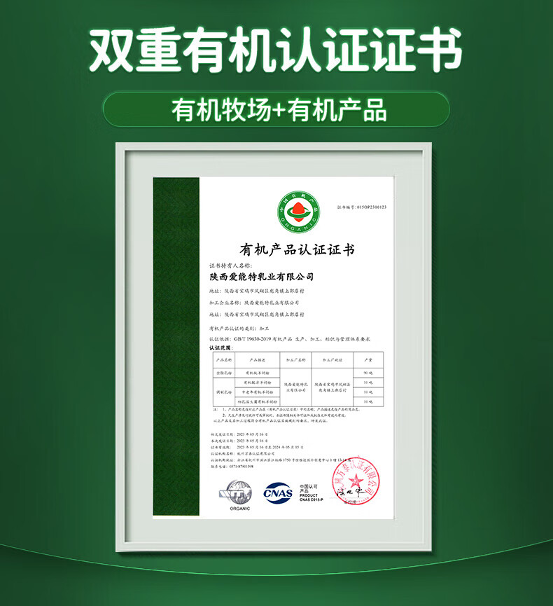 1.双重有机认证证书,每一罐都有独立有机编码 公