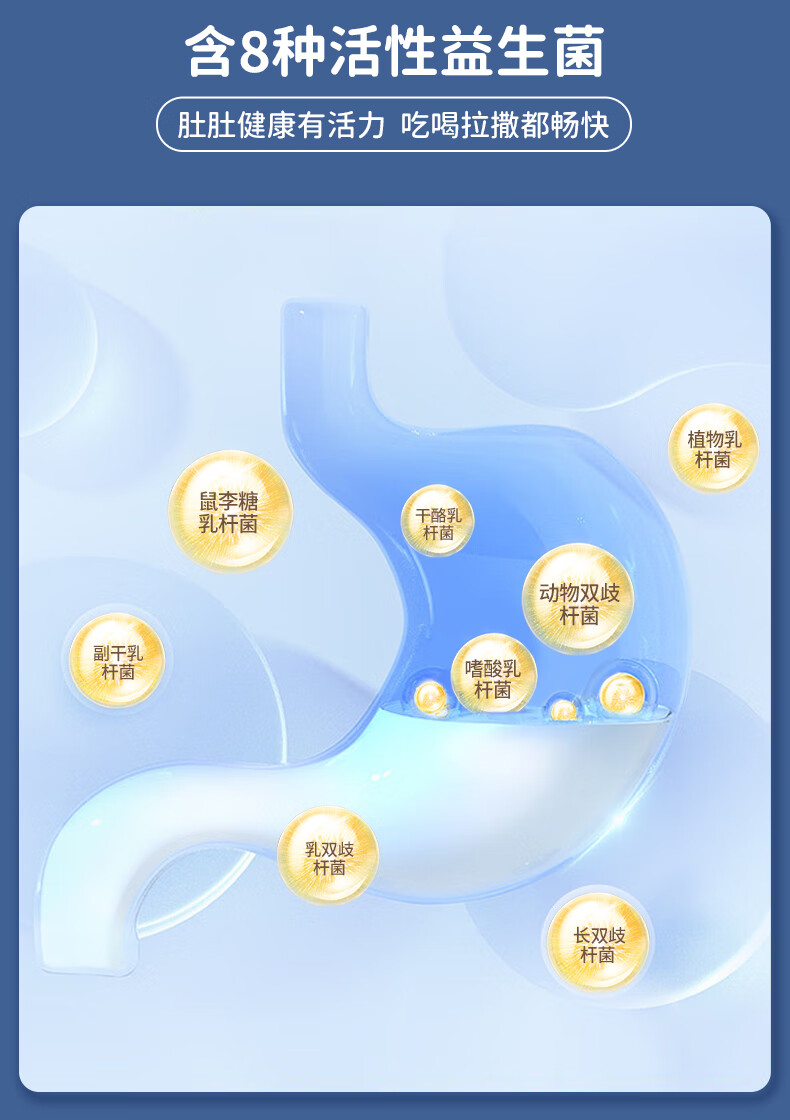 3、【0蔗糖+8种益生菌】维持肠道菌群平衡,保护肠道粘膜,加速