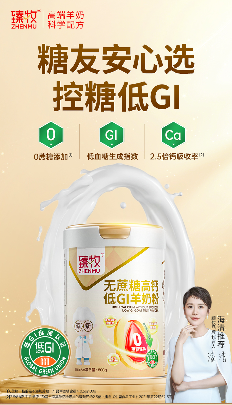 2、低GI食品认证,0蔗糖,三高人群适合喝